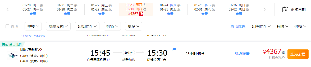 你好题主,过年期间的机票都比其他日期要贵一些,我也是帮你看了几个临近的主要城市出发的机票,广州最为便宜。以1月23出发1月30日返程为标准。然后选择高铁或者卧铺去往广州~这个应该是比较便宜的方式了========== 如果你觉得TA的回答不错,快来给TA点个赞吧! 你的支持是对作者莫大的鼓励~显示全部