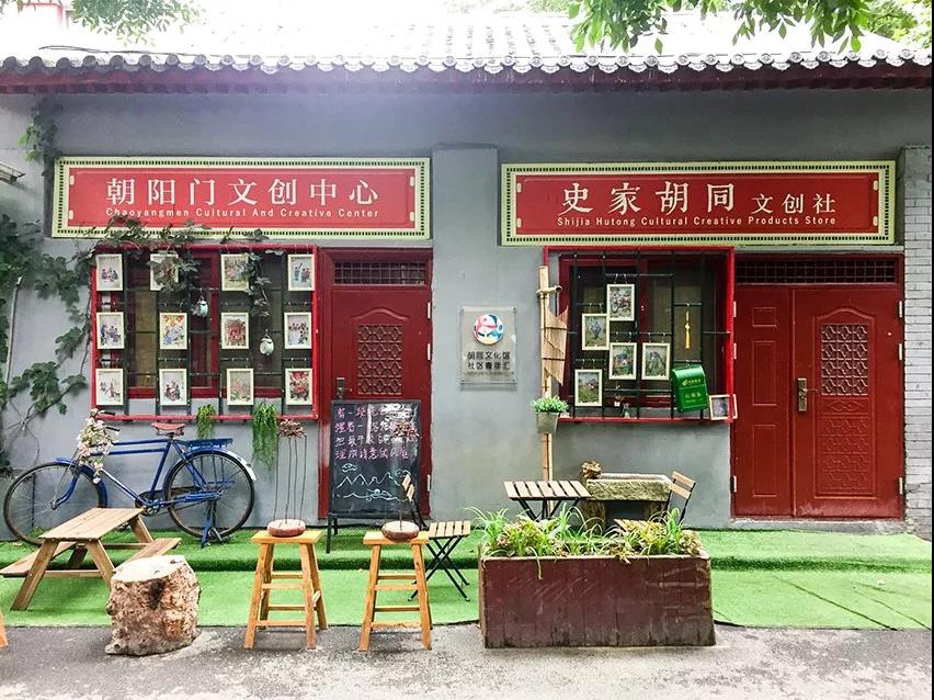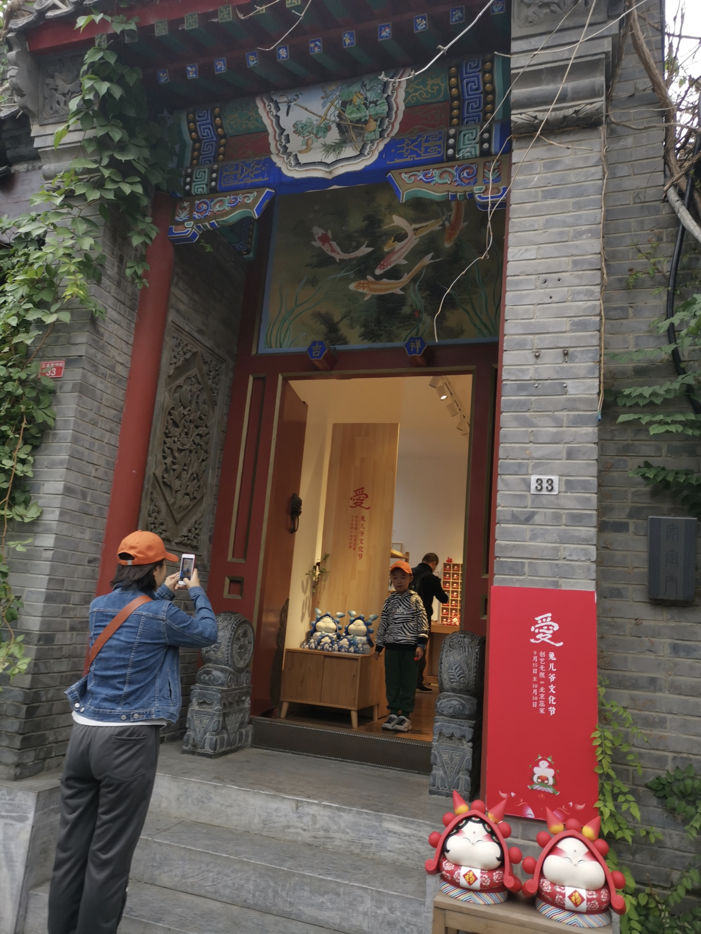 每走几步就能见着颜色醒目亦或是设计感十足的店面,结合老北京传统的青砖灰瓦房屋,冲突却又十分新颖。 接孩子放学的大妈们聚在一块聊家常,大叔们则窝在一块儿斗地主,依旧保持着九零年代邻里和睦走街串巷的生活气息。
