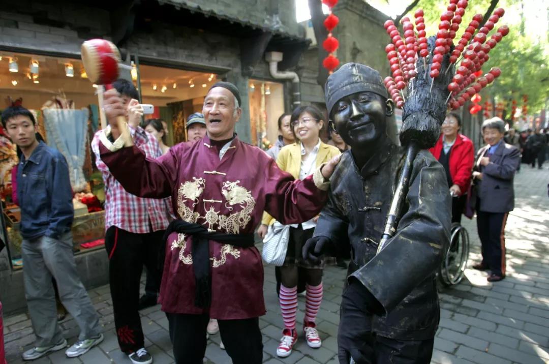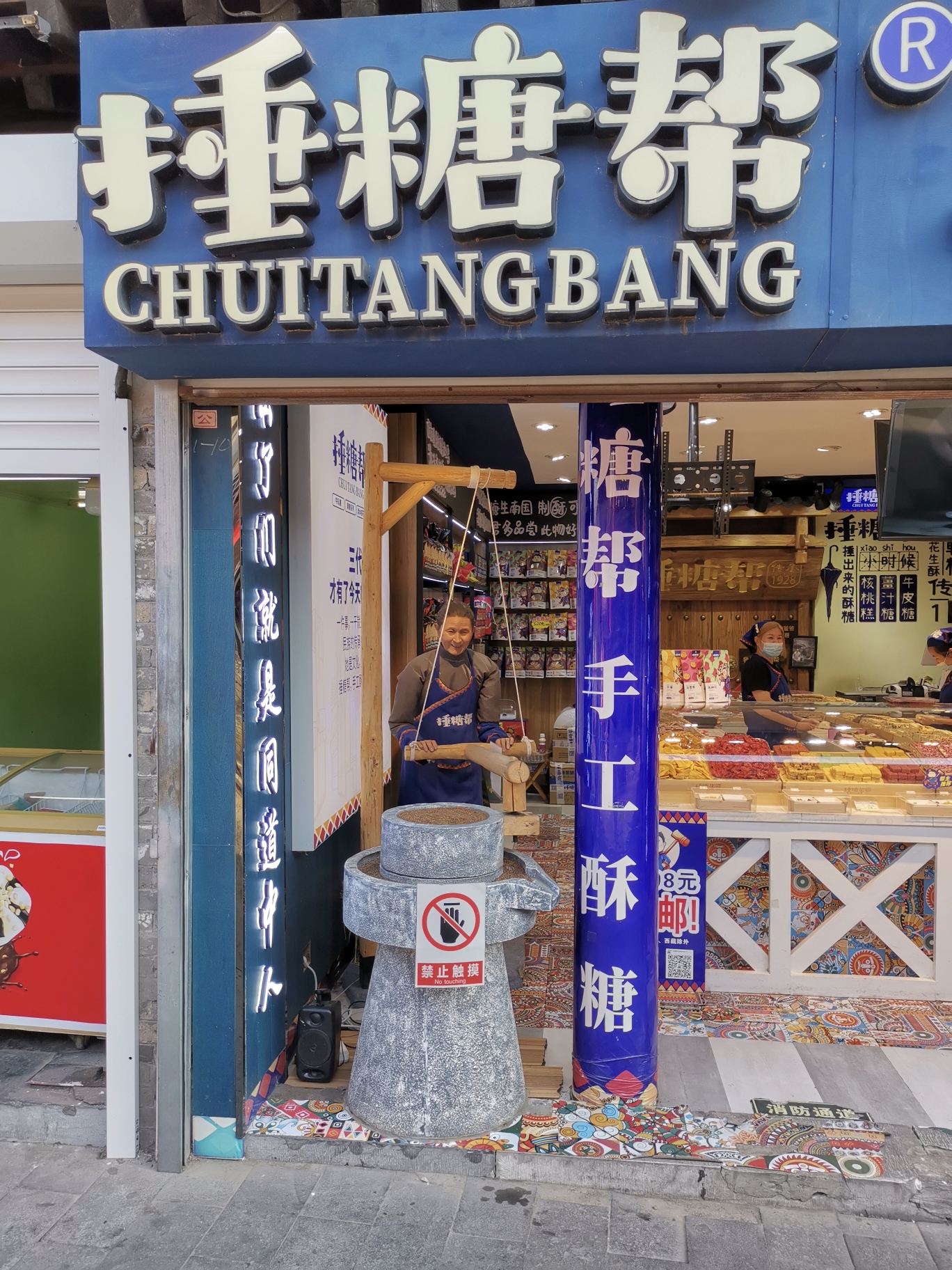 烟袋斜街是北京最古老的的一条商业街,在清朝时主要经营烟具,装裱字画和贩卖古玩玉器,是一条繁华的商业街。在人潮涌动的街道上,你时不时就会走到风格迥异的店铺面前,可能以前这些店面里面卖的就是名家字画,但是更多的是些独具特色小吃和民族气息十足的纪念品。
