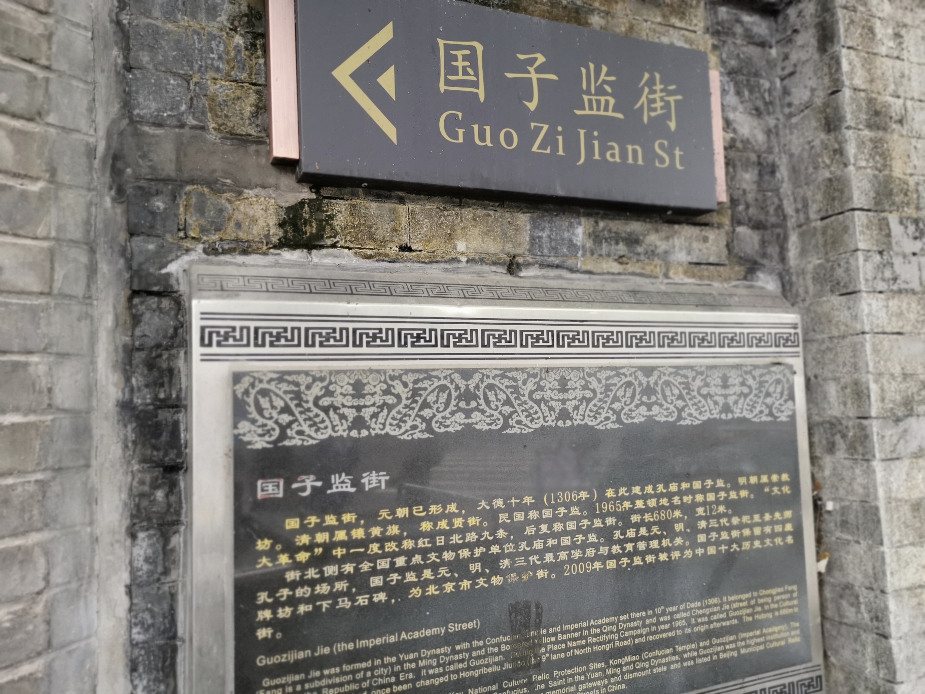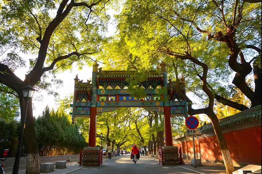 国子监坐落在北京东城区安定门内,是我国现存唯一一所古代中央公办大学建筑。 与孔庙和雍和宫相邻。 国子监街两侧槐荫夹道,大街东西两端和国子监大门两侧牌楼彩绘,是北京仅存的建有四座牌坊的古建街。