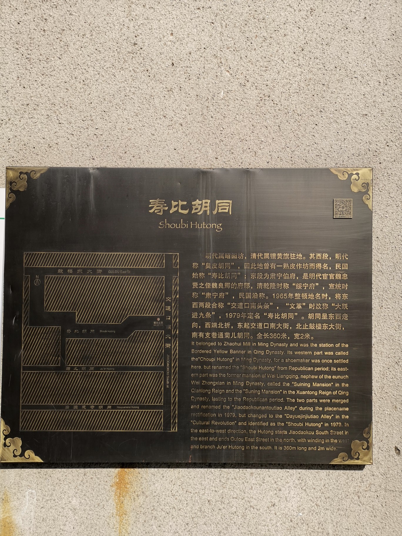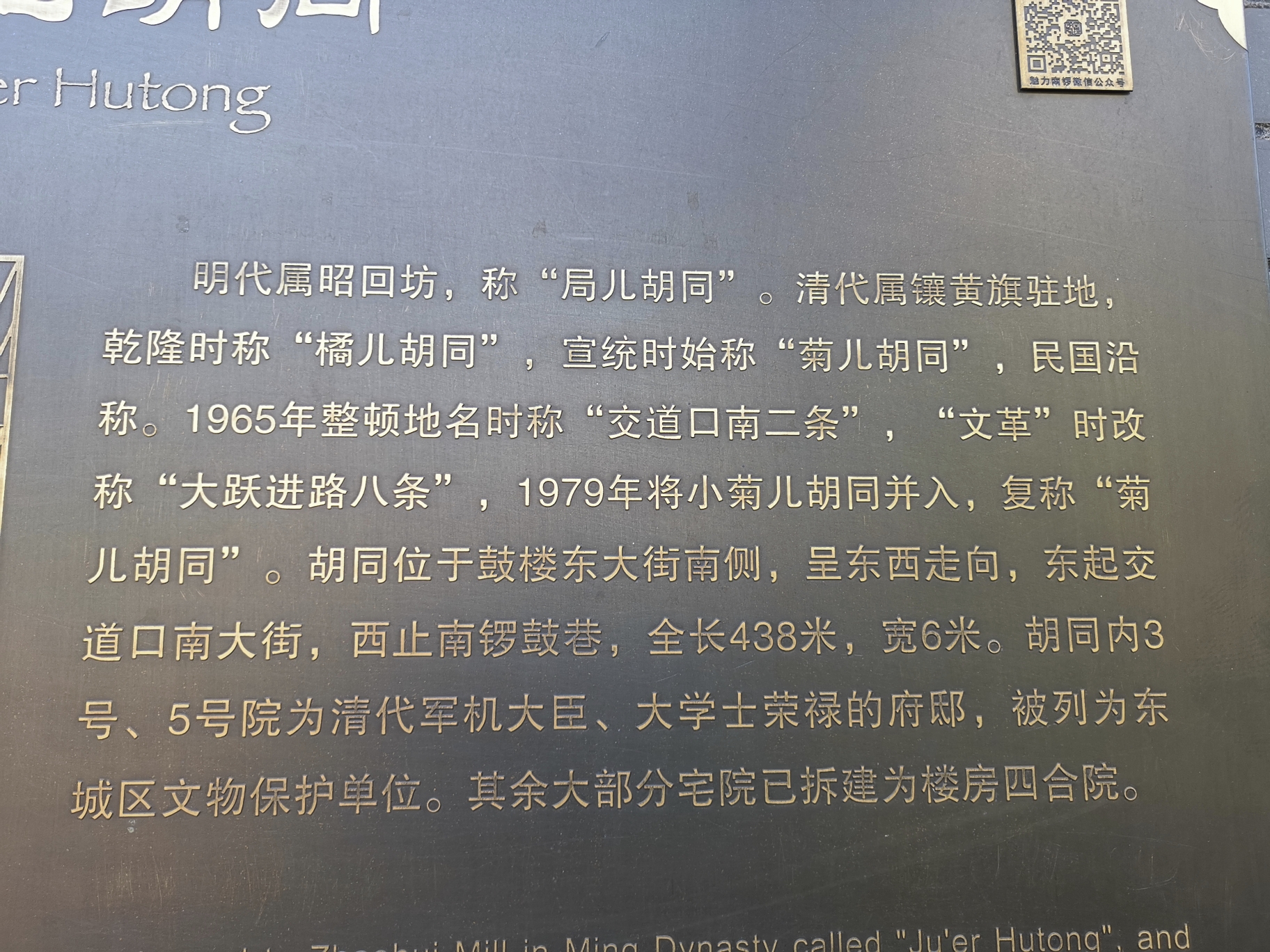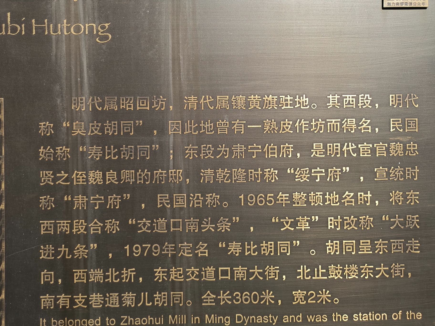 胡同里边儿也有一处名人故居,叫肃宁伯府,这个名人是明代宦官大臣魏忠贤的侄子。这条胡同比较冷门。