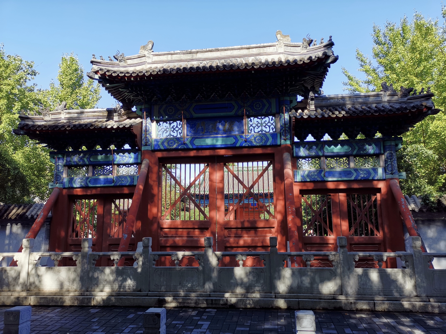 国子监的琉璃牌坊,据说是北京唯一的不属于寺院的琉璃牌坊,牌坊正反两面的横额上,都是乾隆皇帝的御笔,可见古代中国的崇文重教,国子监内设有“中国古代科举展”和“国子监原状陈列展”等常年展览,对科举制度感兴趣的游客不妨来此参观,如果不感兴趣,也建议从雍和宫出来,顺着成贤街走一下,周边的胡同区很不错,四合院灰墙青砖,都是原汁原味的真实市井生活。