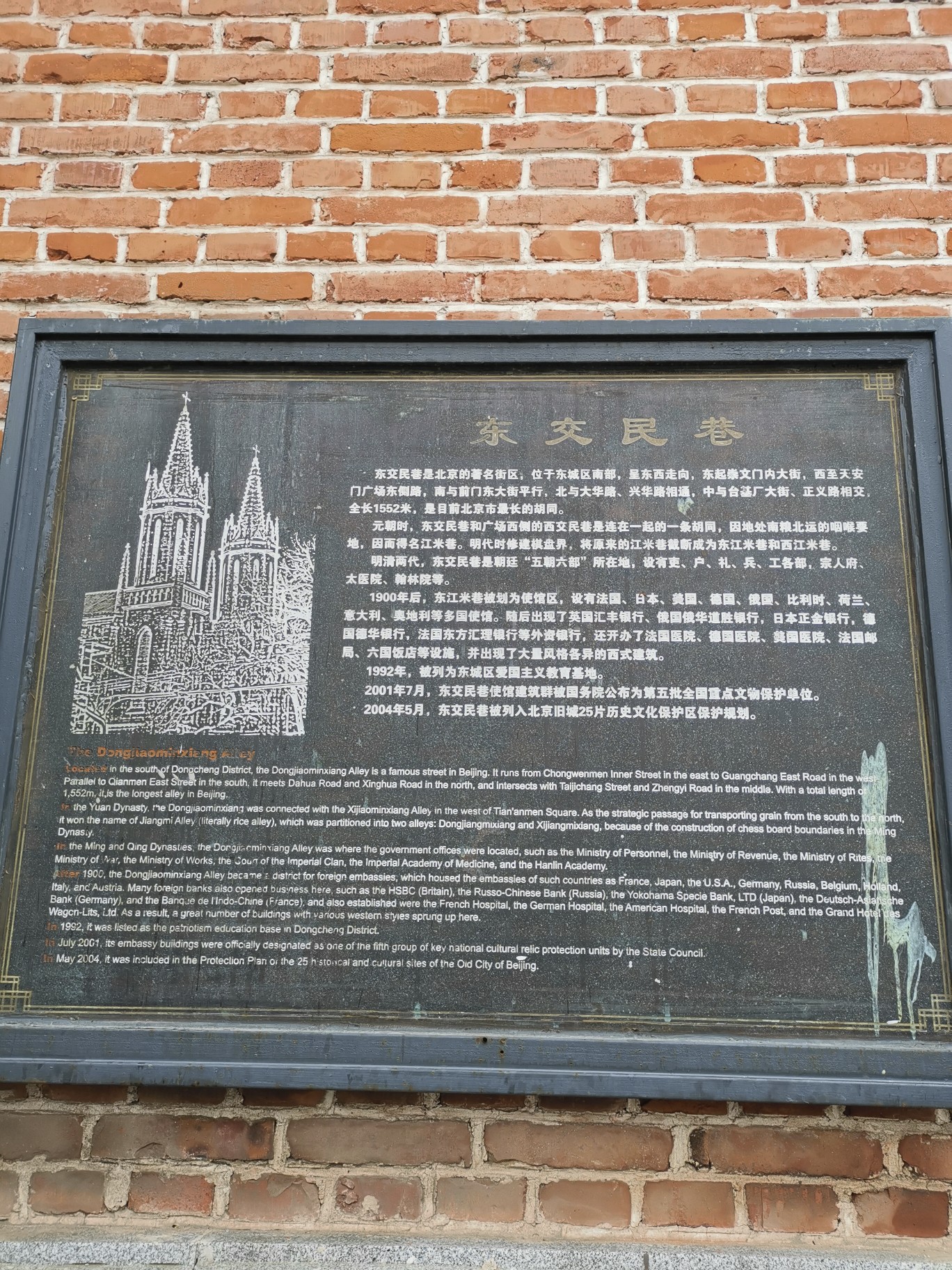 胡同西起天安门广场东路,东至崇文门内大街,全长近3公里,是老北京最长的一条胡同。东交民巷在旧中国时为使馆区。