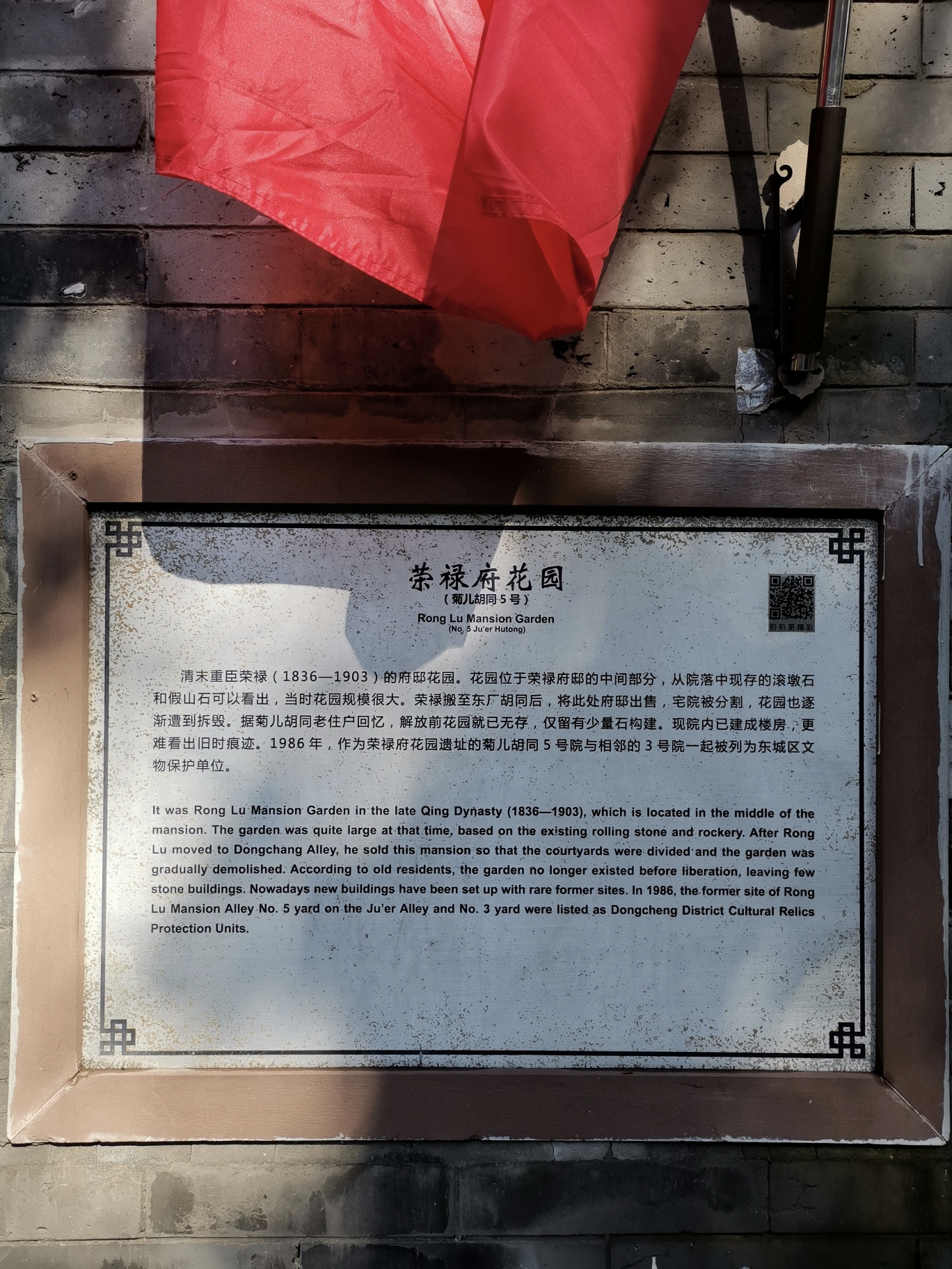 附近还有局儿胡同,明代属昭回坊。清代属镶黄旗驻地,胡同内的三号和五号是清代军机大臣荣禄的府邸。