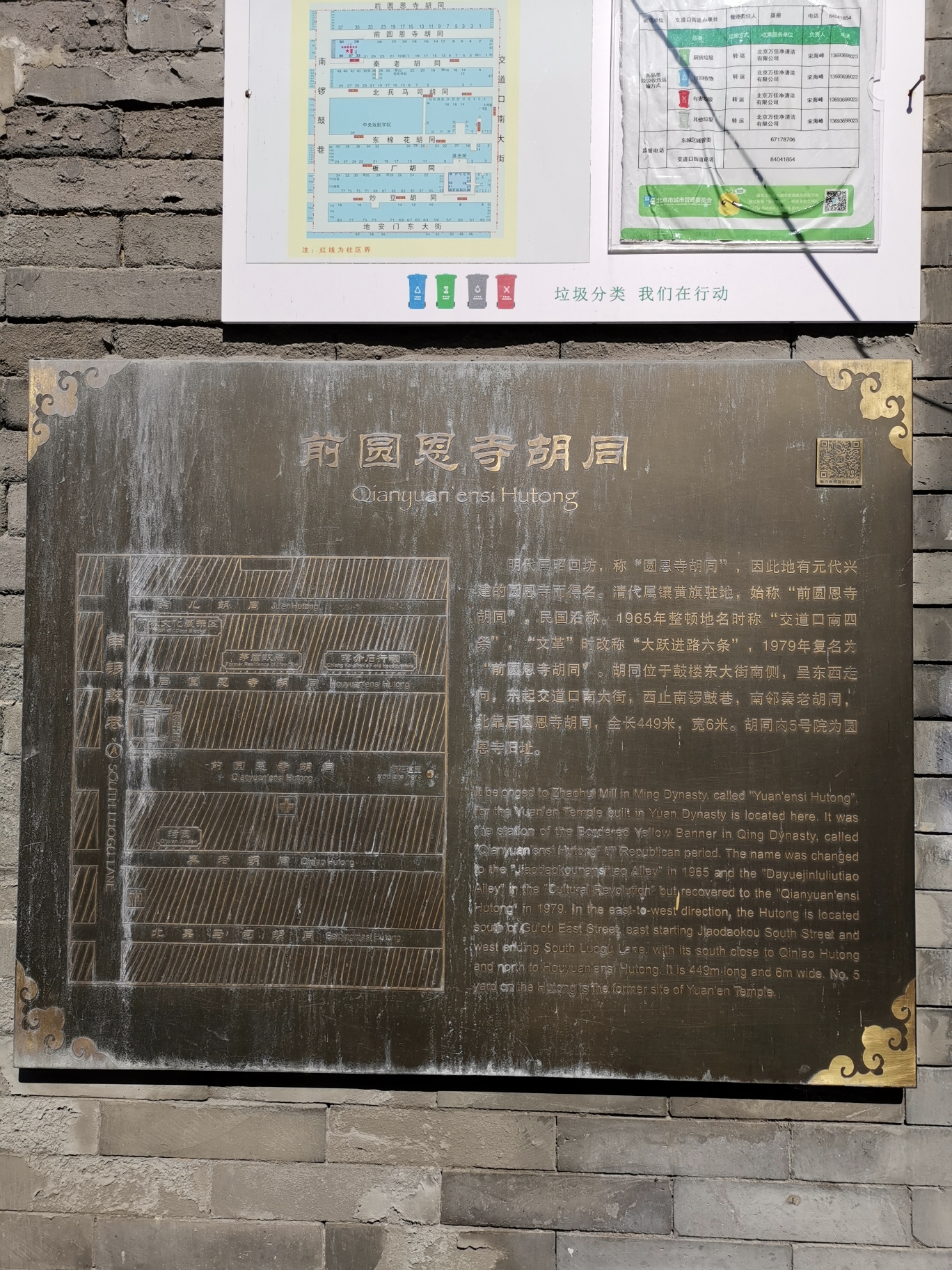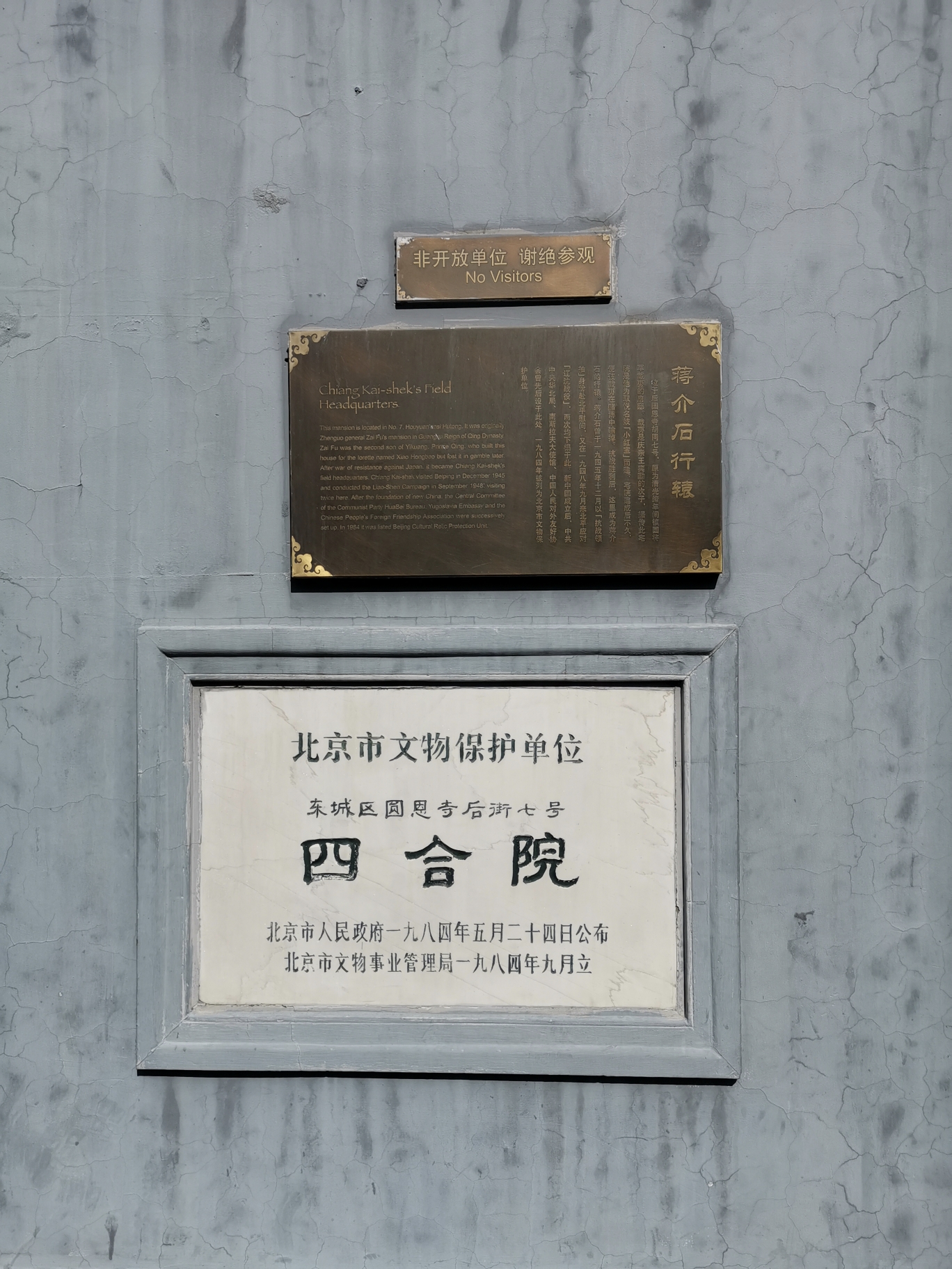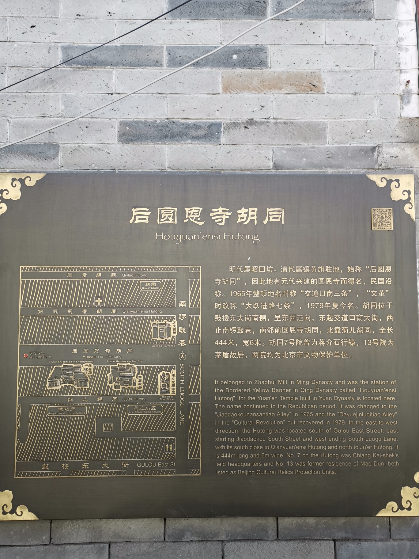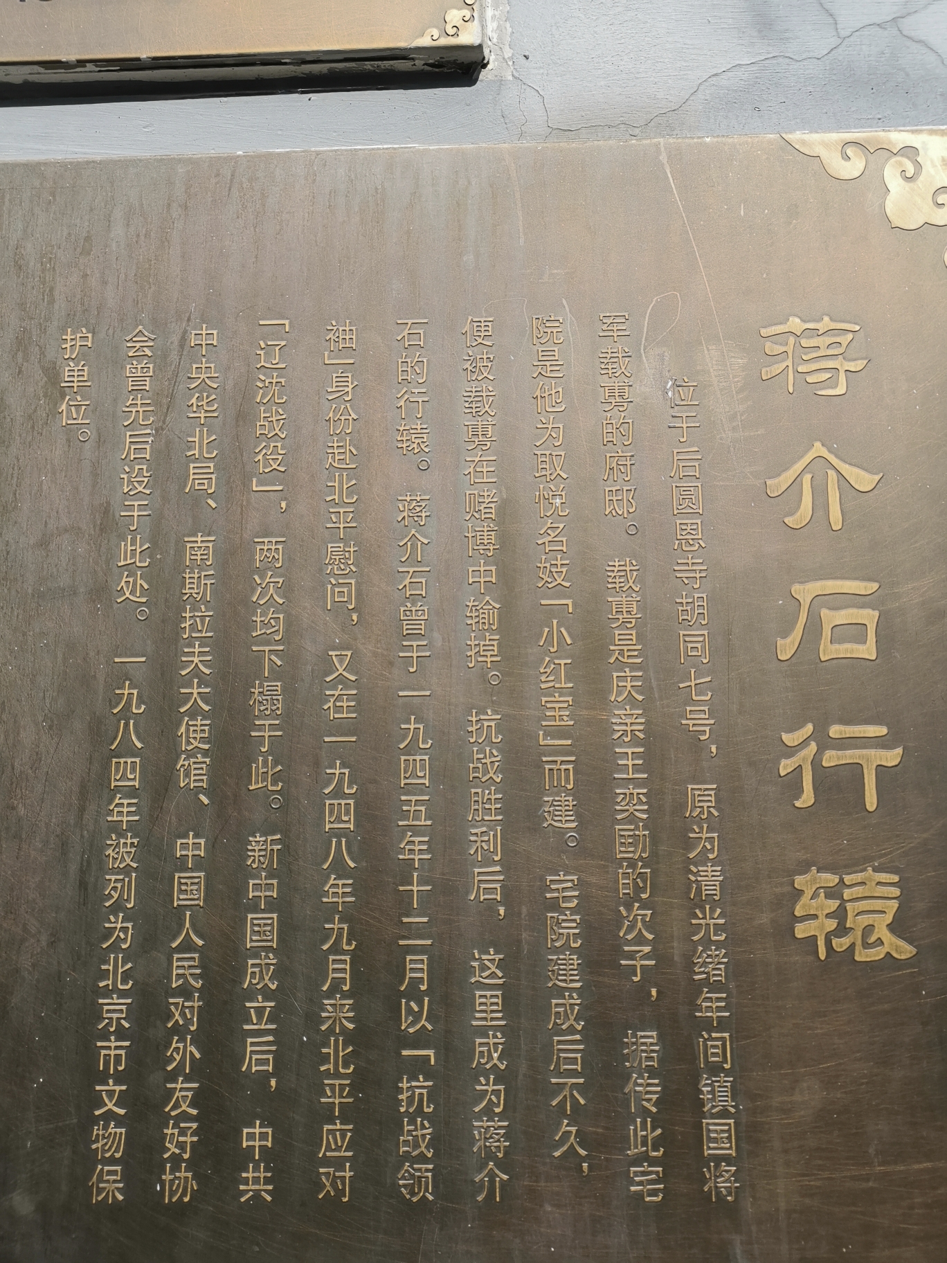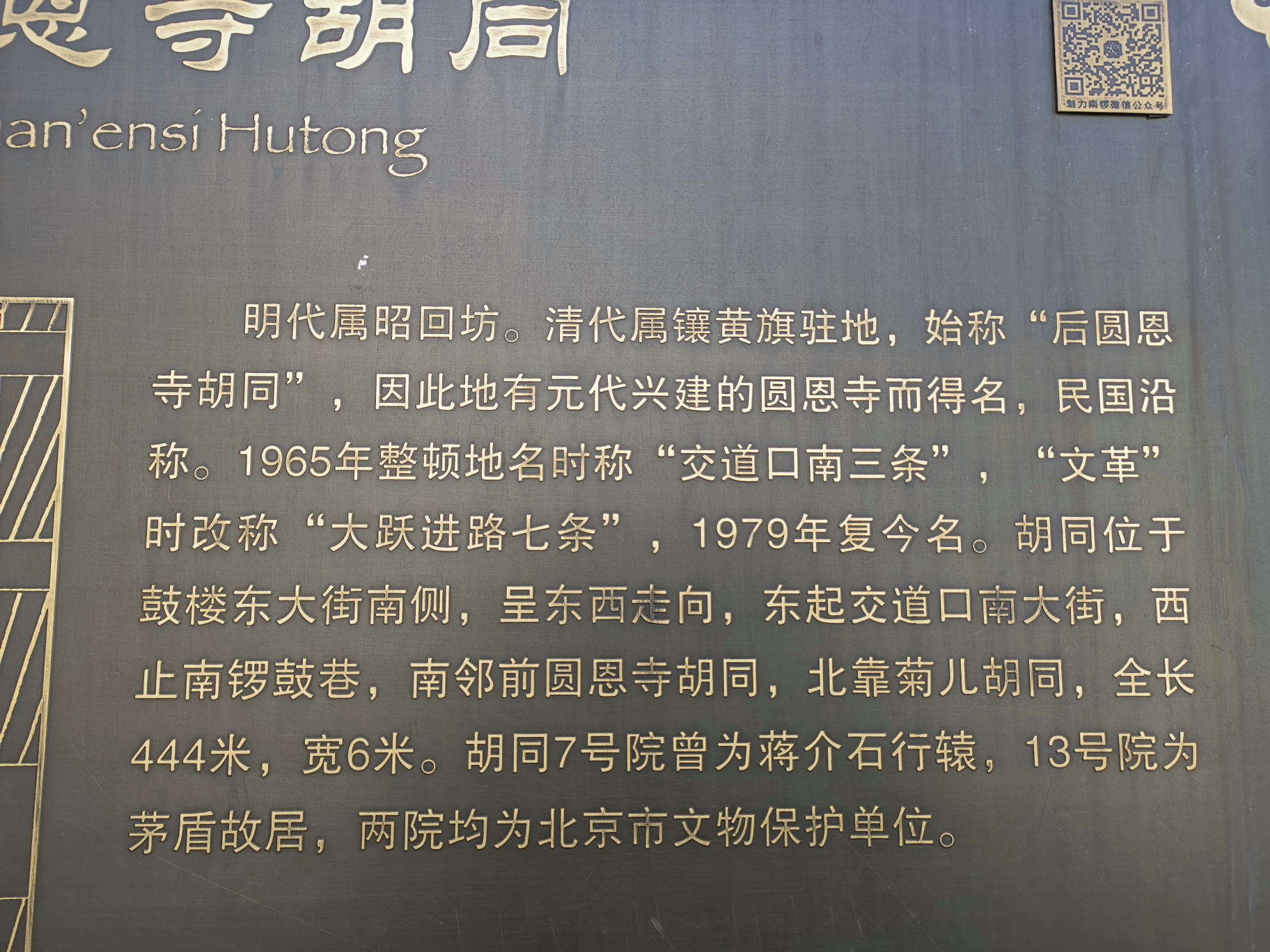 后圆恩寺胡同,明代属昭回坊,此地有元代建造的大元恩寺而得名,胡同七号原是蒋介石的在