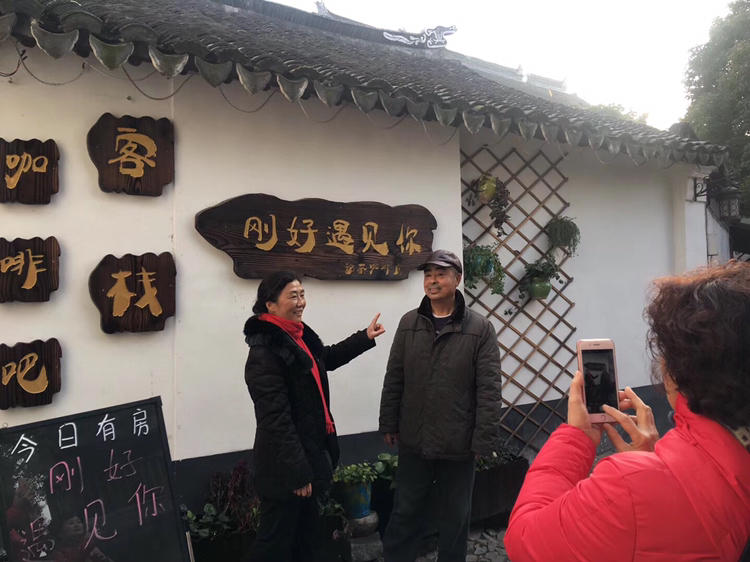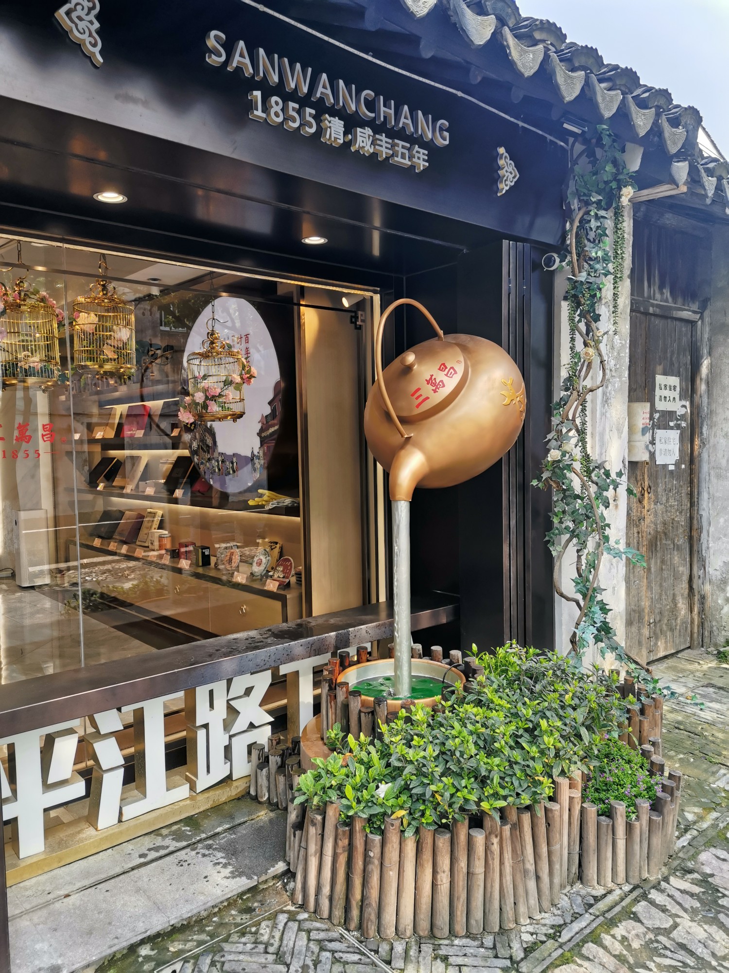 之所以说平江路是网红打卡地,一个很重要的原因就是这里奇葩的店铺名,猫的天空之城、荷言旗袍、蝶舞霓裳、红格子等等,至于里面有什么宝贝,还是等你亲自来揭开吧。很喜欢白墙上的一段话:等你很久,你还没来,我却已习惯了等你。