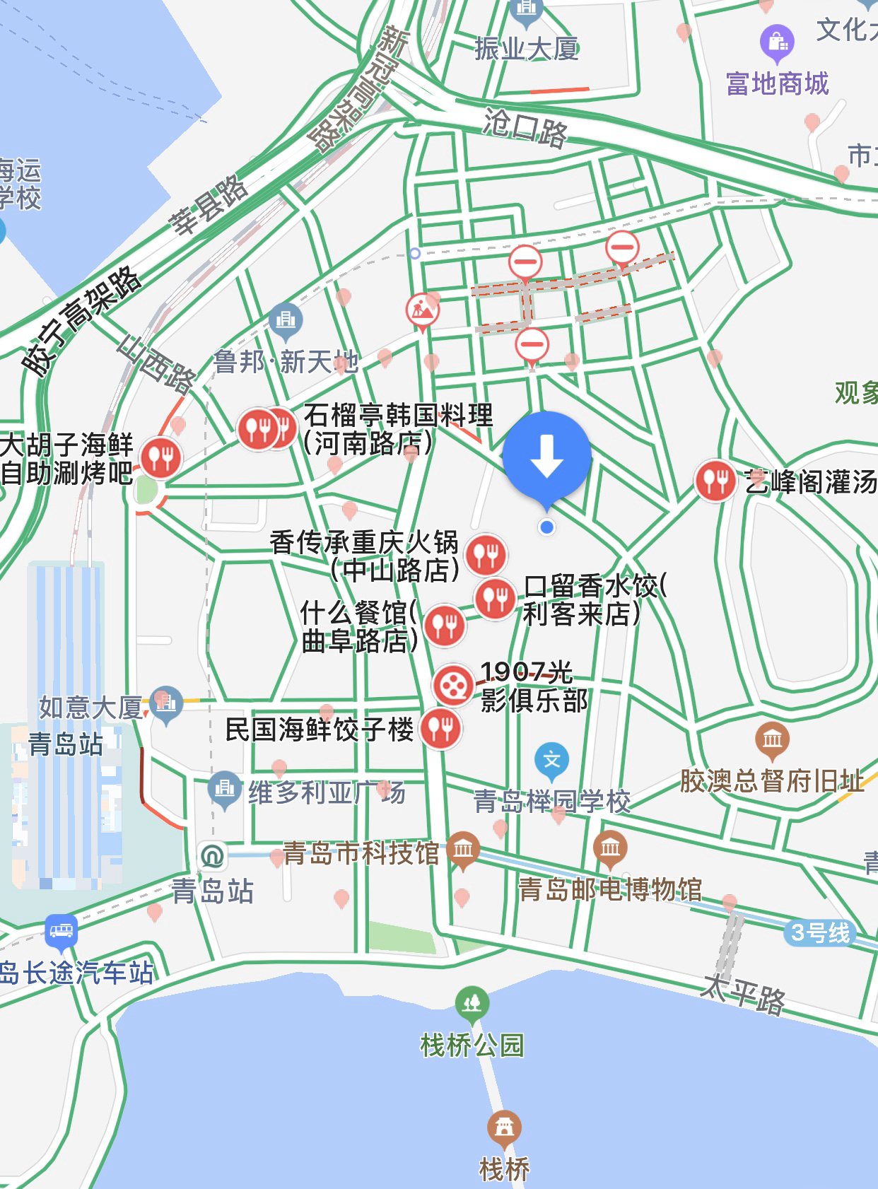 离这里最近的就是劈柴院了。汇集了各种小吃。劈柴院位于青岛市市南区中山路商业圈,是中山路、北京路、河北路和天津路围合的街坊。其实劈柴院有个路名叫江宁路,德国占领青岛后,于1902年修建了此路。它是“卜”字形,东端连着中山路,北边连北京路,西边通河北路。“江宁”是南京的古称,这里也是青岛最早的“南...显示全部