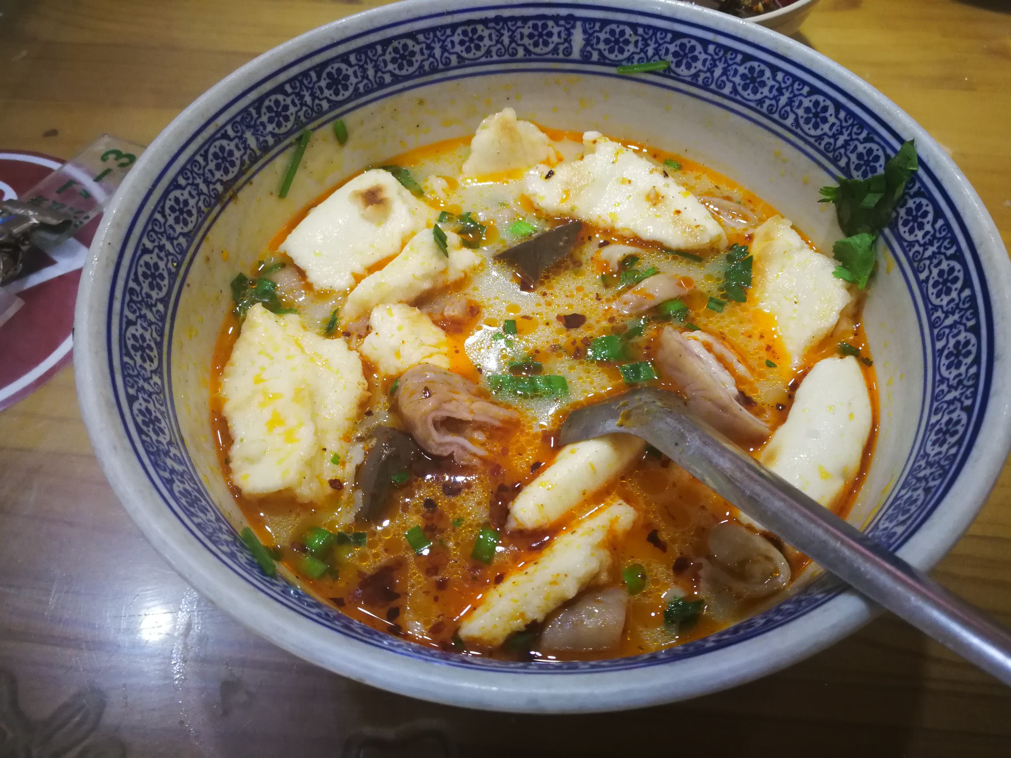 胡辣汤很稠,里边有牛肉丁,酥油饼特别酥脆,不管是泡在胡辣汤里还是直接嚼着吃都非常美味。另外就是秦豫肉夹馍要7点钟才开始营业,如果早上出发比较早的话可能会来不及,胡辣汤的话早上5点半就开门了!因为时间紧只吃了胡辣汤,不过都是
