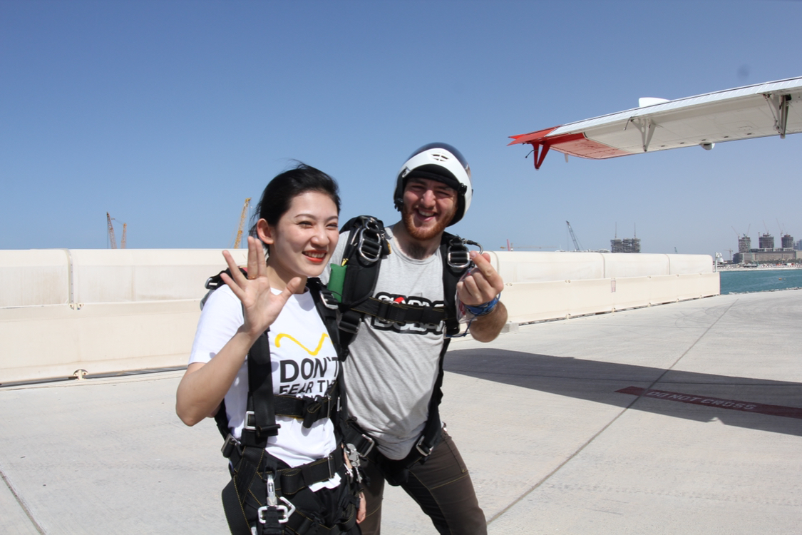我没在迪拜高空跳伞过,但是在澳洲凯恩斯大概10前跳了一次。如果是选择没有培训的tandem jump,其实是有人陪你一起跳的,真的到那一步其实就是被教练推着走,一旦跳下去还是很刺激的,自由落体很快很刺激,但是我更喜欢伞开之后,慢慢降落,可以看风景!还有就是跳的时候争取闭着嘴巴,要不然风太大,照...显示全部