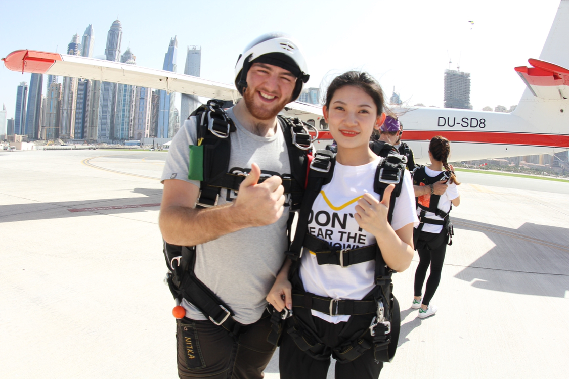 跳伞是不退不换的哈,想好了再下订单哈,趁着年轻身体好,值得挑战一次哈,而且是双人跳伞,教练带着您跳伞,别担心哈,迪拜跳伞在世界上跳伞安全性是排第一名的,因为迪拜跳伞公司的天气预报是和迪拜航空的天气预报一个系统的,而且就算不安全的风的指数降低到了安全指数了,迪拜跳伞公司也会先让教练们试跳后,如果...显示全部