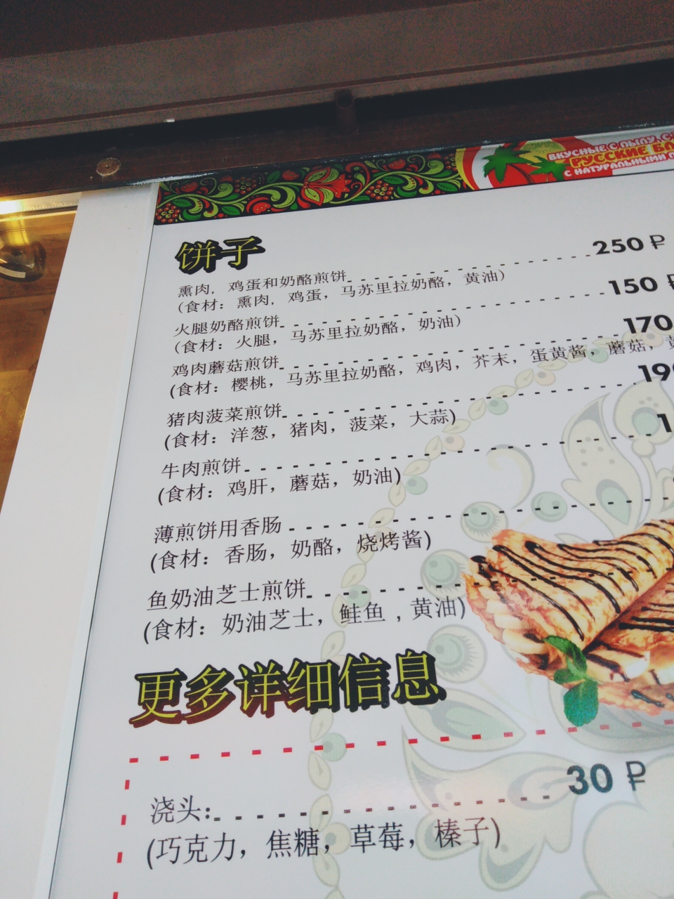 红场Red Square跨年活动Happy New Year(地铁1/2/3号猎人商铺/剧院/革命广场站)广场有集市、游乐场等。等待零点烟花,“乌拉”扎里亚季耶公园-公园露天舞台有演出古姆国立百货-百年历史商场,“普京牌”冰淇淋no.57餐厅,可退税,10:00-22:00猎人购物中心-地下三层,药妆店,mymy餐厅,连锁煎饼店。10:00-22:00中央百货-