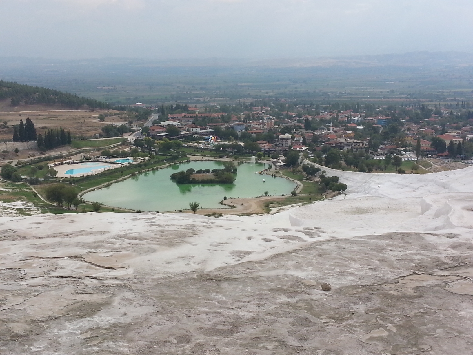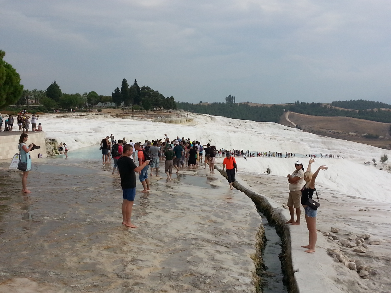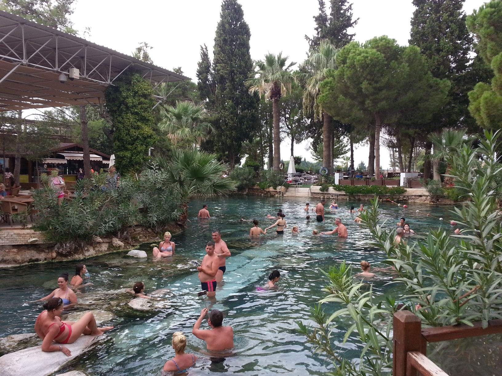 ,因其一层层亮闪闪的白色钙华温泉池形似棉花而得其名。池水很浅,你可以直接下去感受一下,但要注意安全,因为有点滑。池水上方有个古游泳池,水中淹没着一些古代的大理石圆柱,你可以在里面游泳体验,很有复古的滋味。