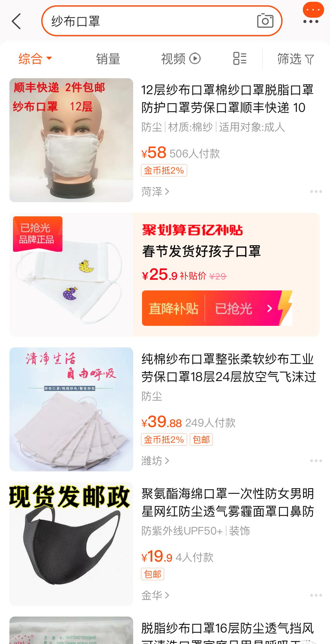 现在口罩已经是紧俏物资了,昨天国家把医用口罩列为统管物资,由国家统一管理和调配,优先保障湖北地区和一线医务人员。个人购买途径现在主要有两种:1️⃣网购。现在国内各大电商自营店医用口罩已经脱销,而且暂时也不会补货。现在唯一可以买到口罩的地方就是在淘宝上买,但是对于来源和效果无法保证,而且快递现在...显示全部
