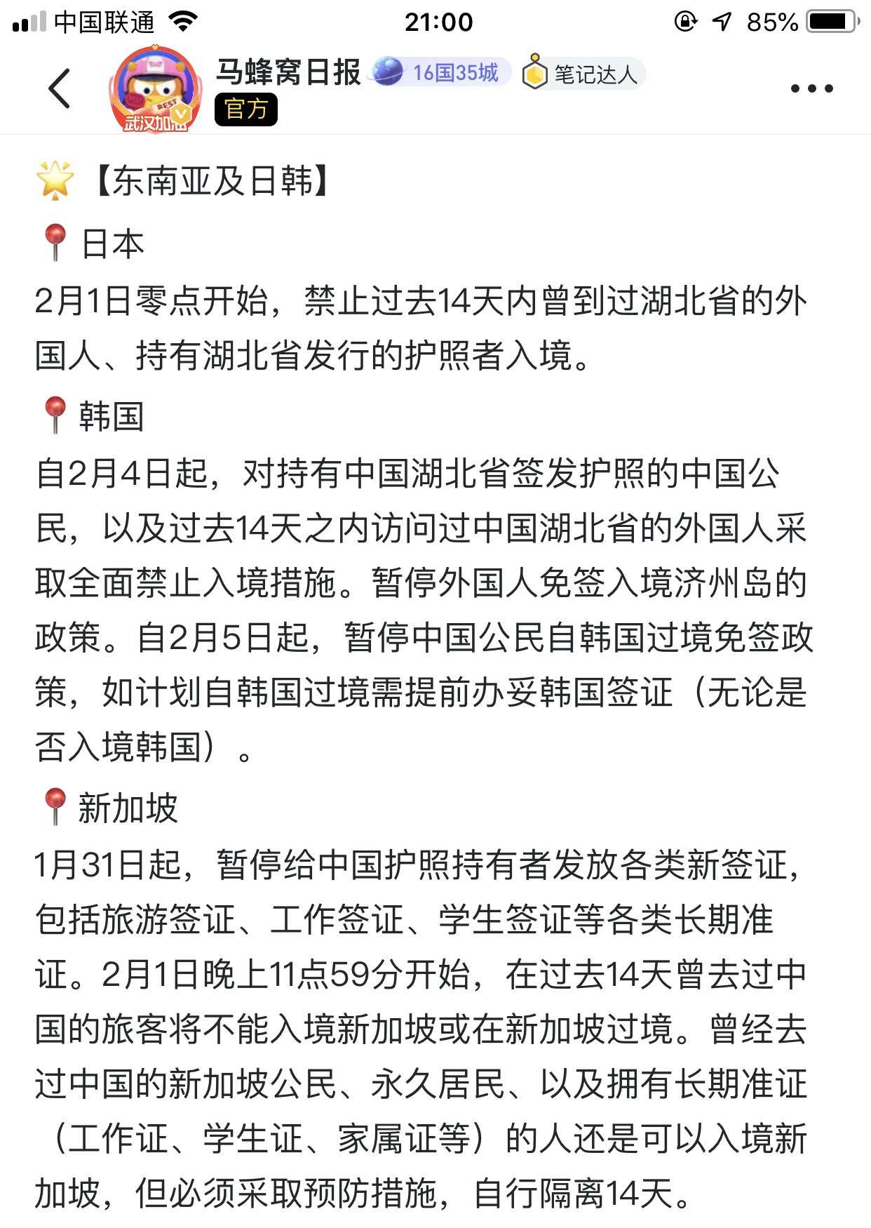 另外,中日飞机已经停飞,游轮也停止了,所以目前