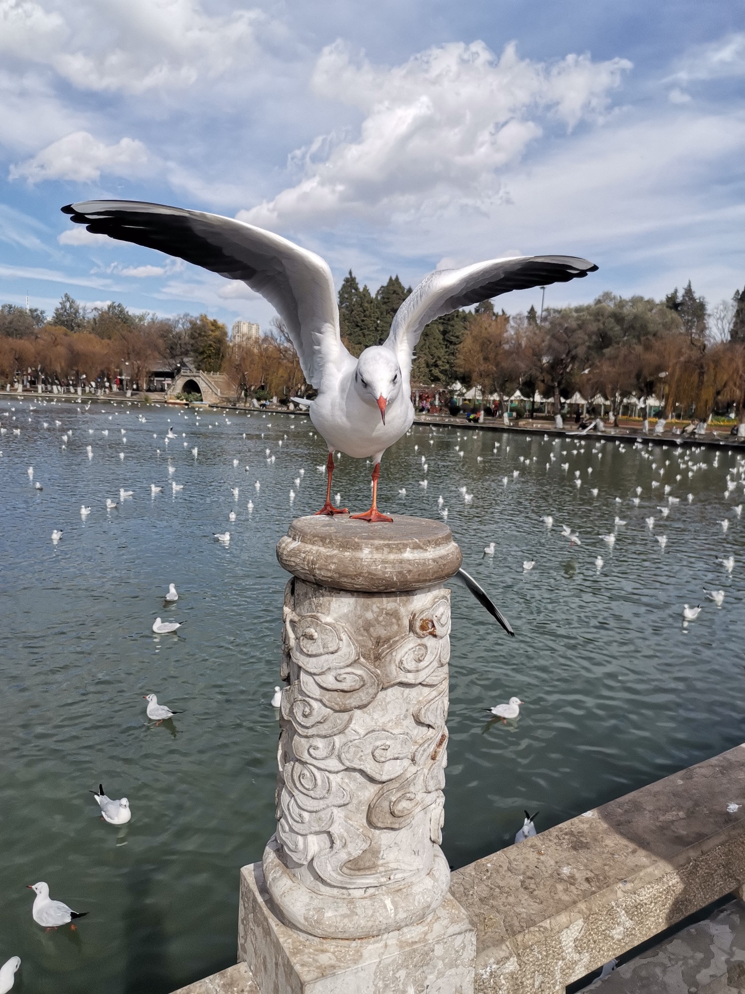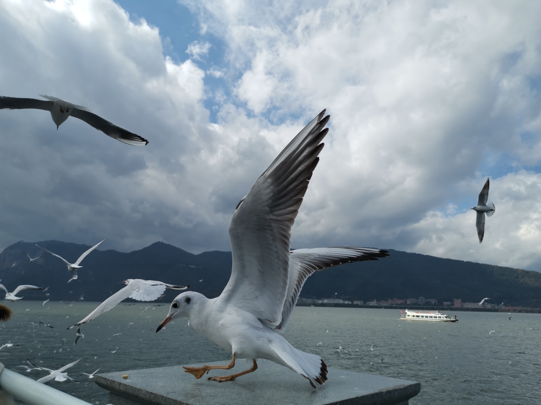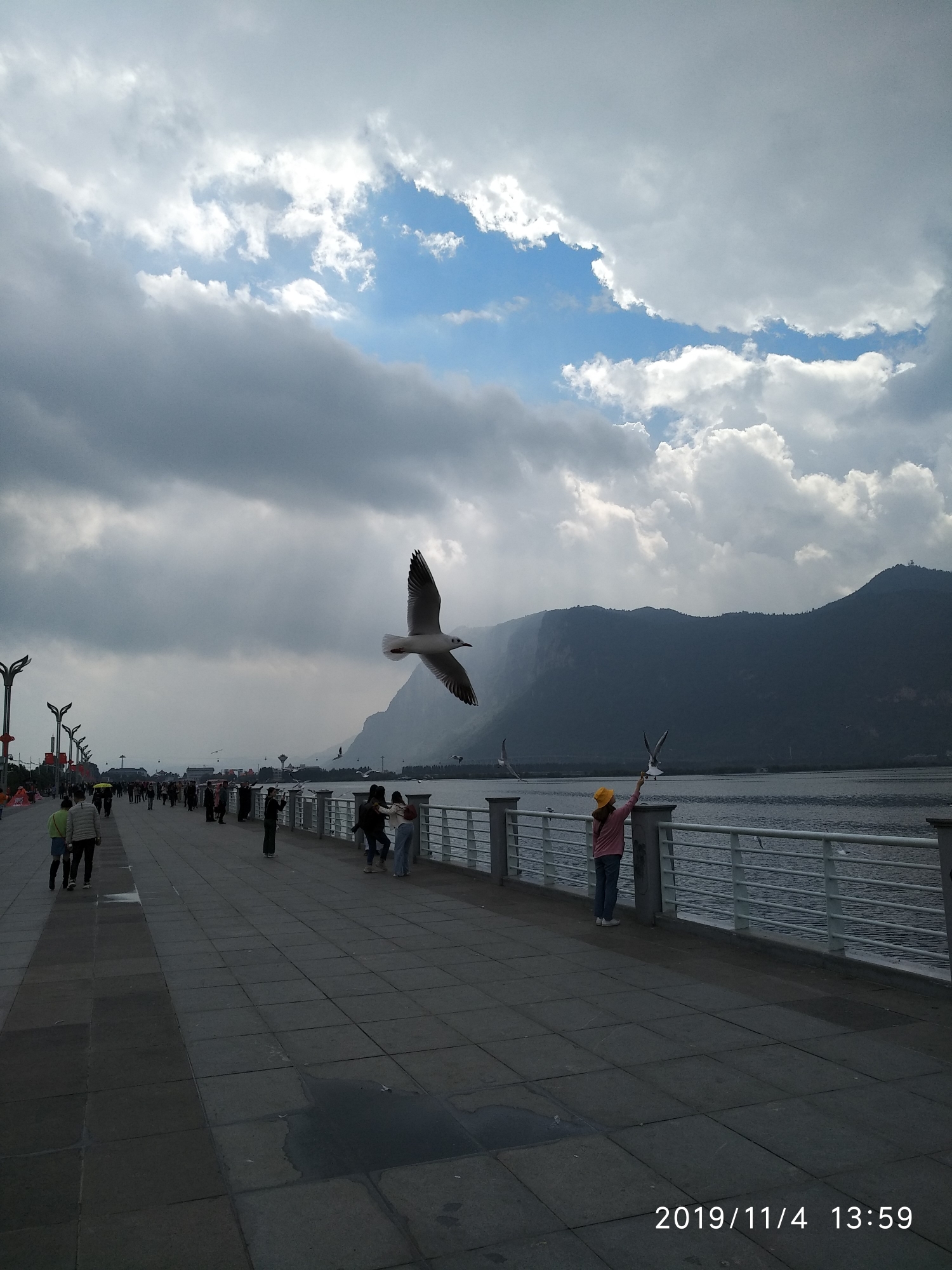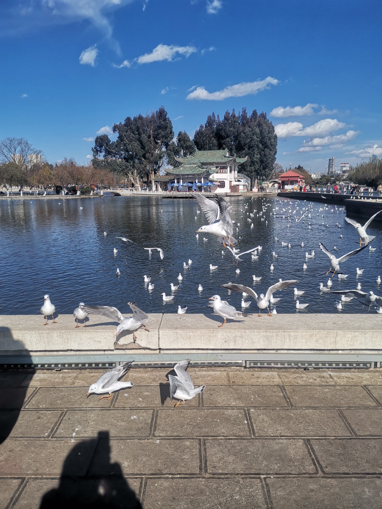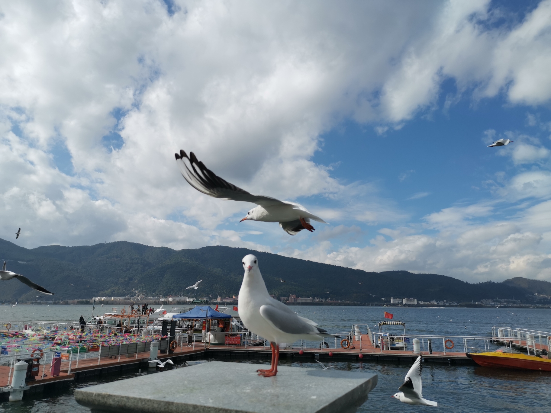 可以准备一些饼干或者面包,放手里,把手伸过去海鸥就会来吃,还可以趁机拍照。滇池边风大,记得多带一件外套哦!
