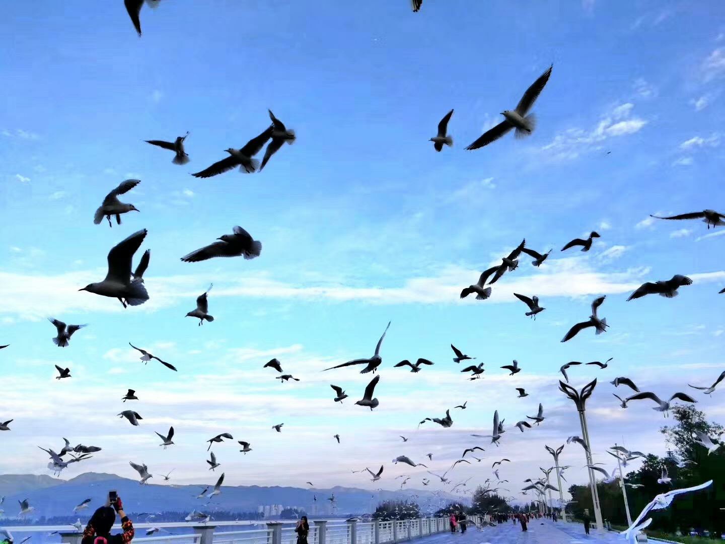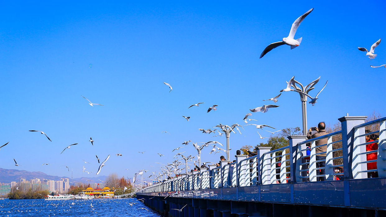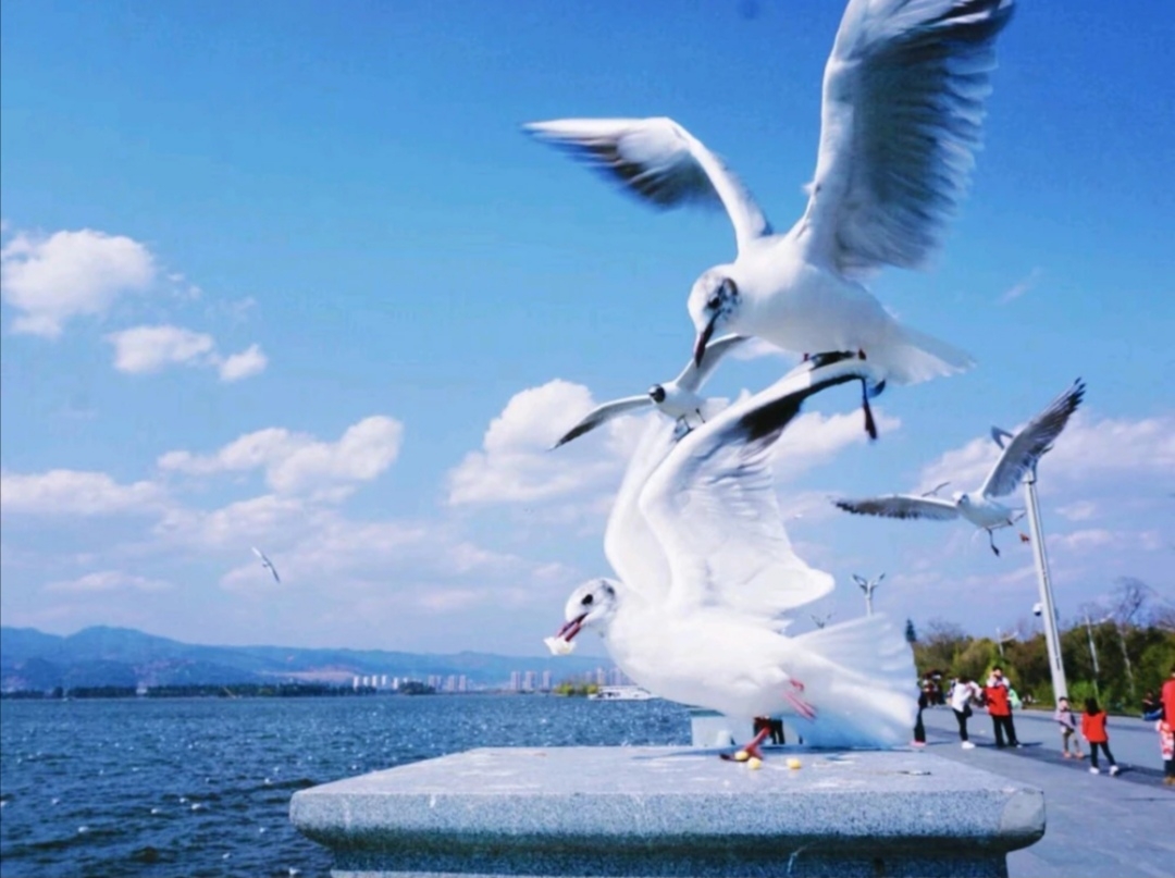 每年的11月到次年3月,有成千上万只从西伯利亚飞来的小精灵——海鸥,在云南的