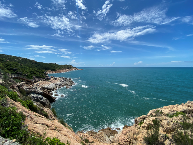 小径湾与巽寮湾隔海相望,东边是十里银滩海岸线,西边便是乌山头绿道,绿道的另一头是大亚湾黄金海岸。漫步在滨海栈道,仿佛置身于“东方夏威夷”,除了美丽的大海与沙滩之外,还有一条长达五公里的沿海绿道。暖冬来到小径湾,约上三五知己,在岸边绿道骑行,奔跑在山的那头,饱览整个海湾海天一色的美景,感受远处的山川与大海紧紧相连的诗情画意,也是一件很惬意的事。