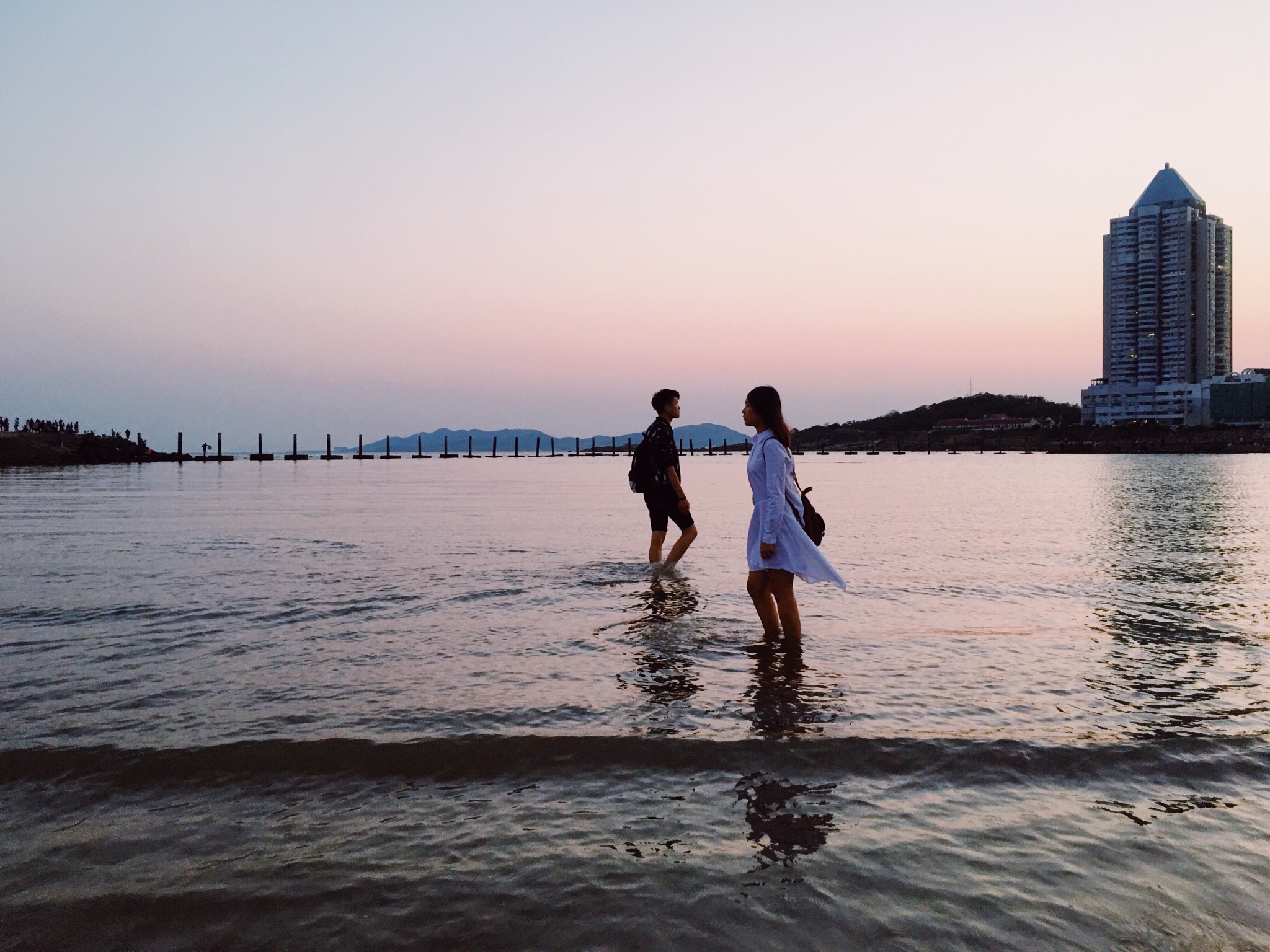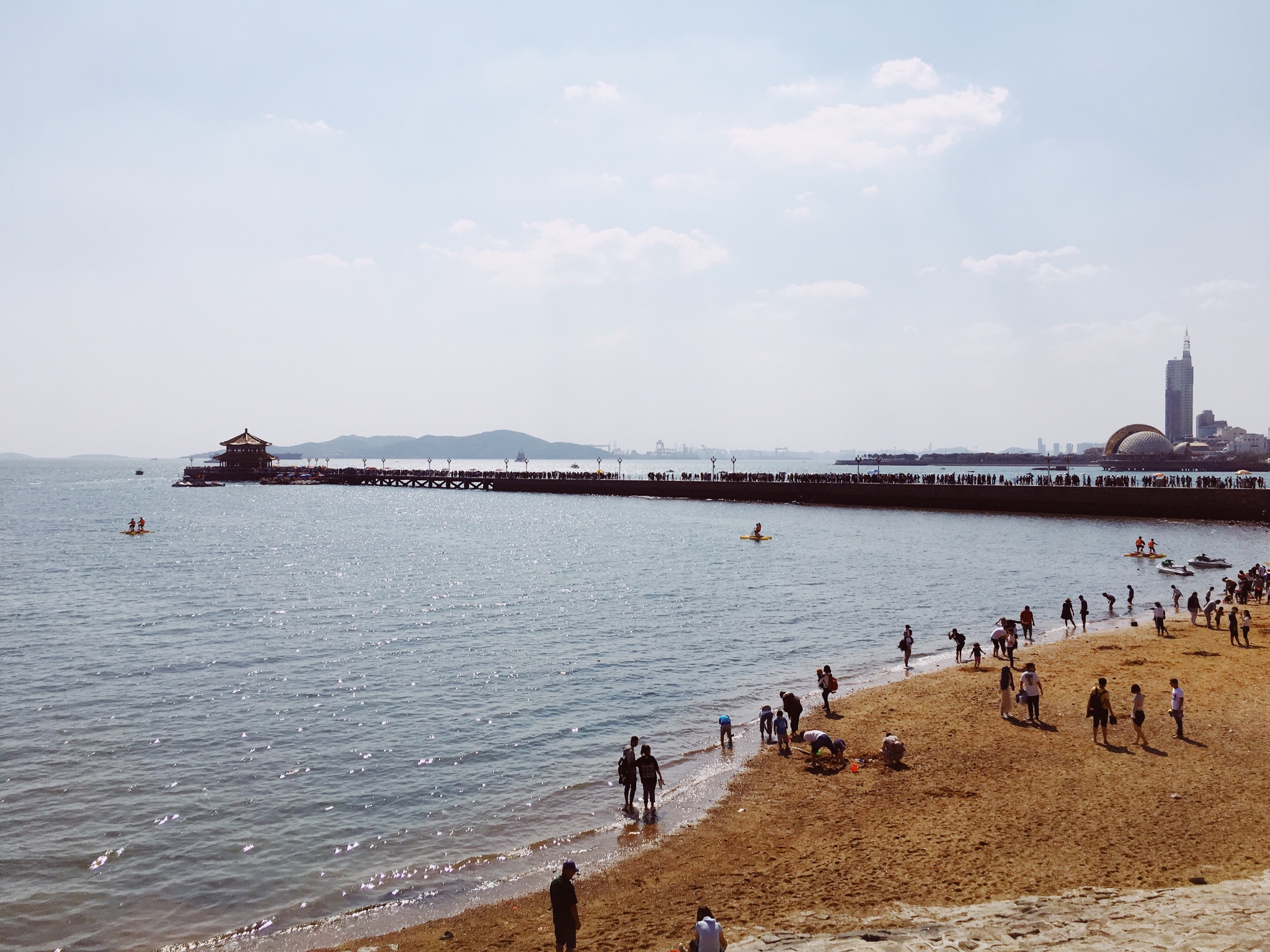 栈桥旁边也有一点儿沙滩,俗称栈桥海水浴场,可以近距离玩一下水。