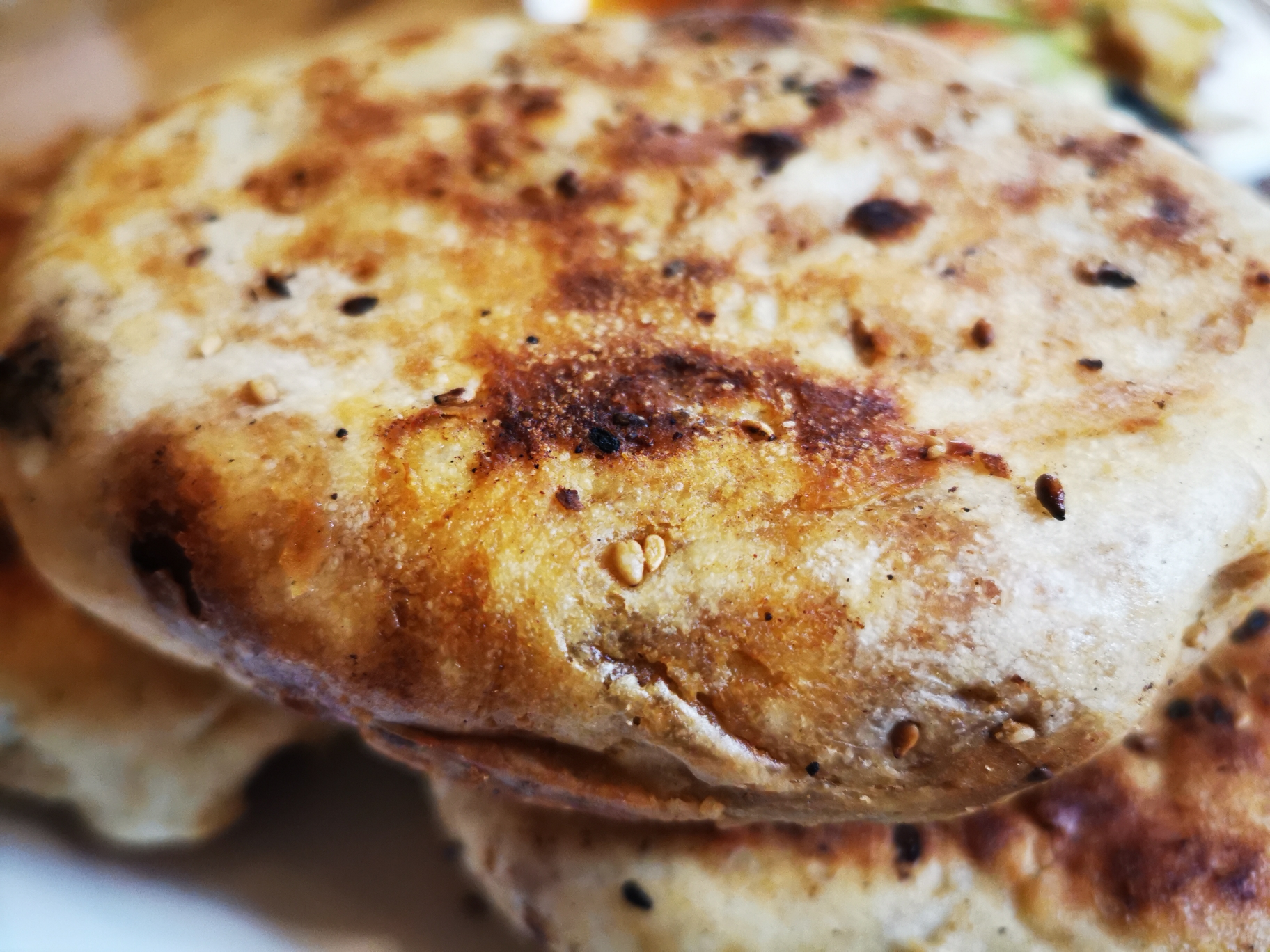 这个芝麻饼很厚实,也超级好吃。只有手工面饼才有这个味儿
