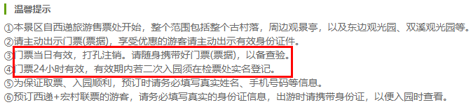 [题主采纳]蜂友你好,根据同程网预订须知显示:西递门票24小时有效,有效期内再次入园需到检票处办理登记手续。宏村门票实名制登记后三天有效:呈坎门票为一次有效,出园再入园需重新购票(可走小路直接进村,但无票进不了宝纶阁),以上希望对你有用。========== 如果你觉得TA的回答不错,快来给TA点个赞吧...显示全部