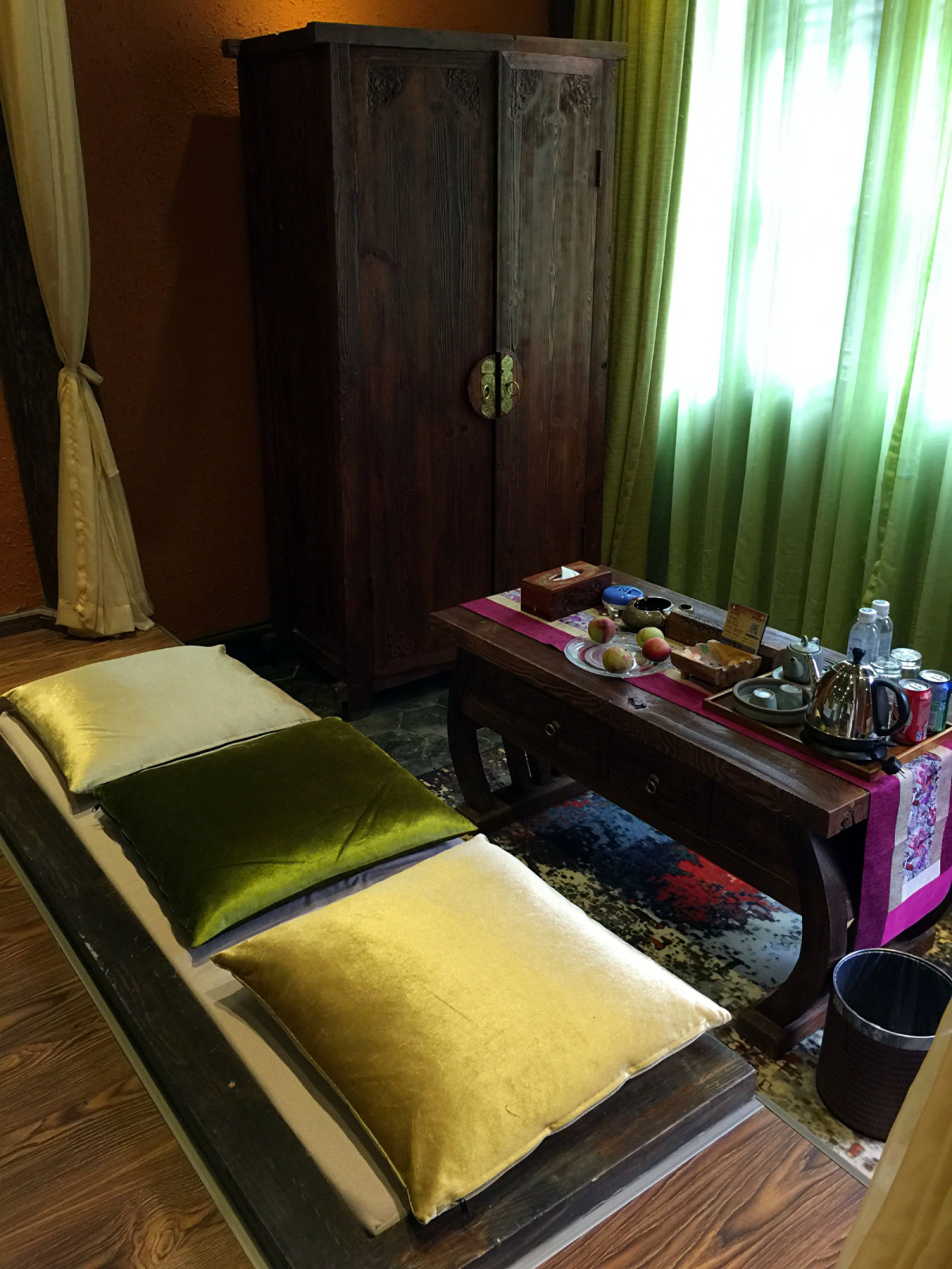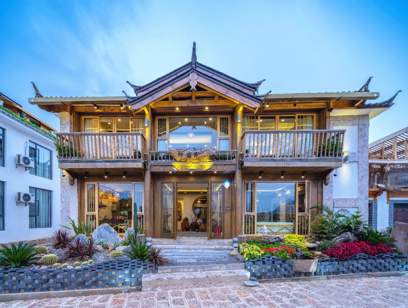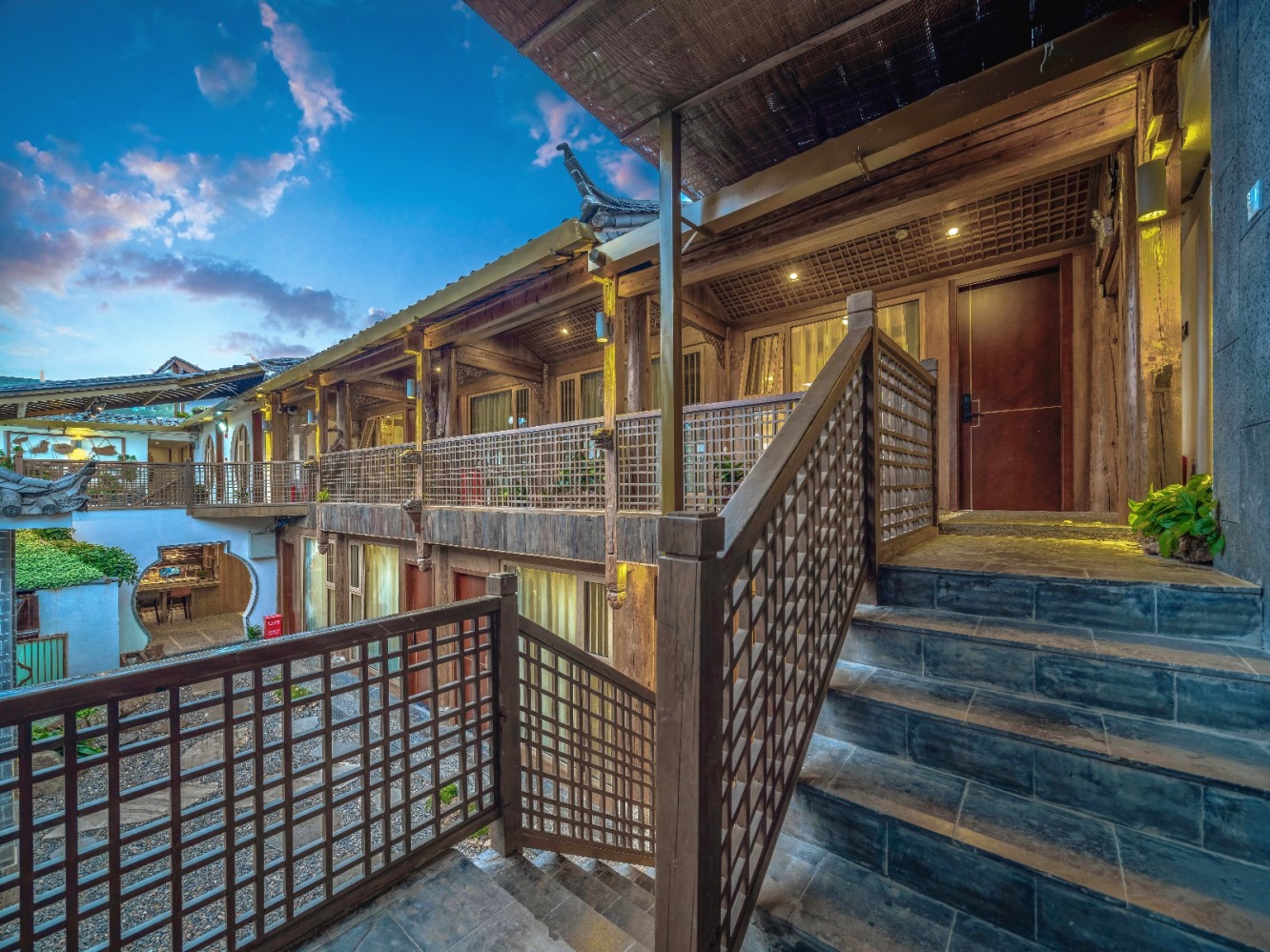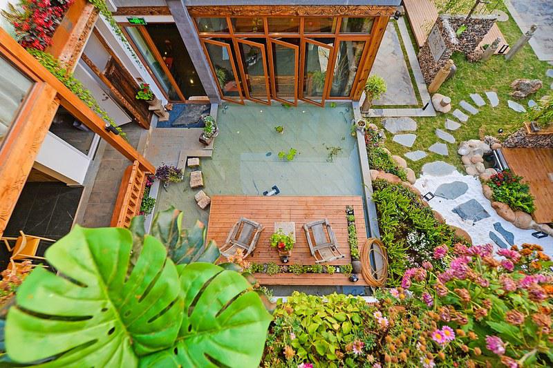 我们住的是一家复古木质别墅一进门就是一个花园庭院,绿萝从二楼的围栏爬下来,秘密麻麻就像一个绿色的窗帘。院子里种满了各种各样的鲜花,翠绿的盆栽,整个院子里氧气满满。民宿的环境非常好,午后可以坐在院子里的茶桌前泡一杯普洱,享受着美丽的蓝天白云过着闲云野鹤的生活,简直就是人间一大快事!