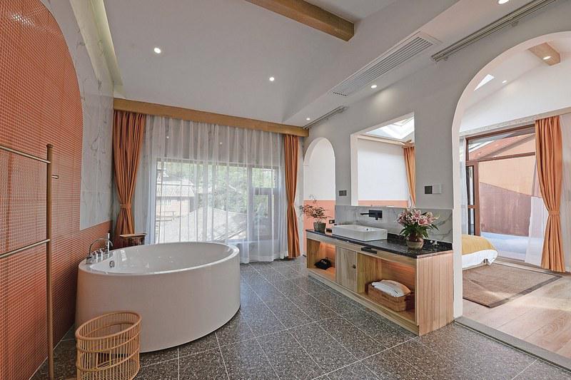 的气息,夜晚在浴缸中泡个舒服的鲜花浴,全身被香气与惬意感包围住。民宿距离