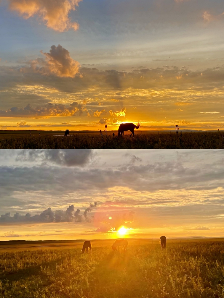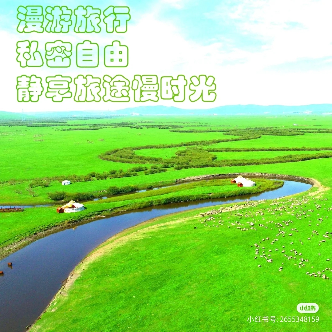 大草原是一年中最美的季节。雨少阳光充足,天气温度很适宜户外活动。晨雾、暖阳、夕照、星光是它的天气特征,加上金黄一片的北国草原风情,宁静柔美的