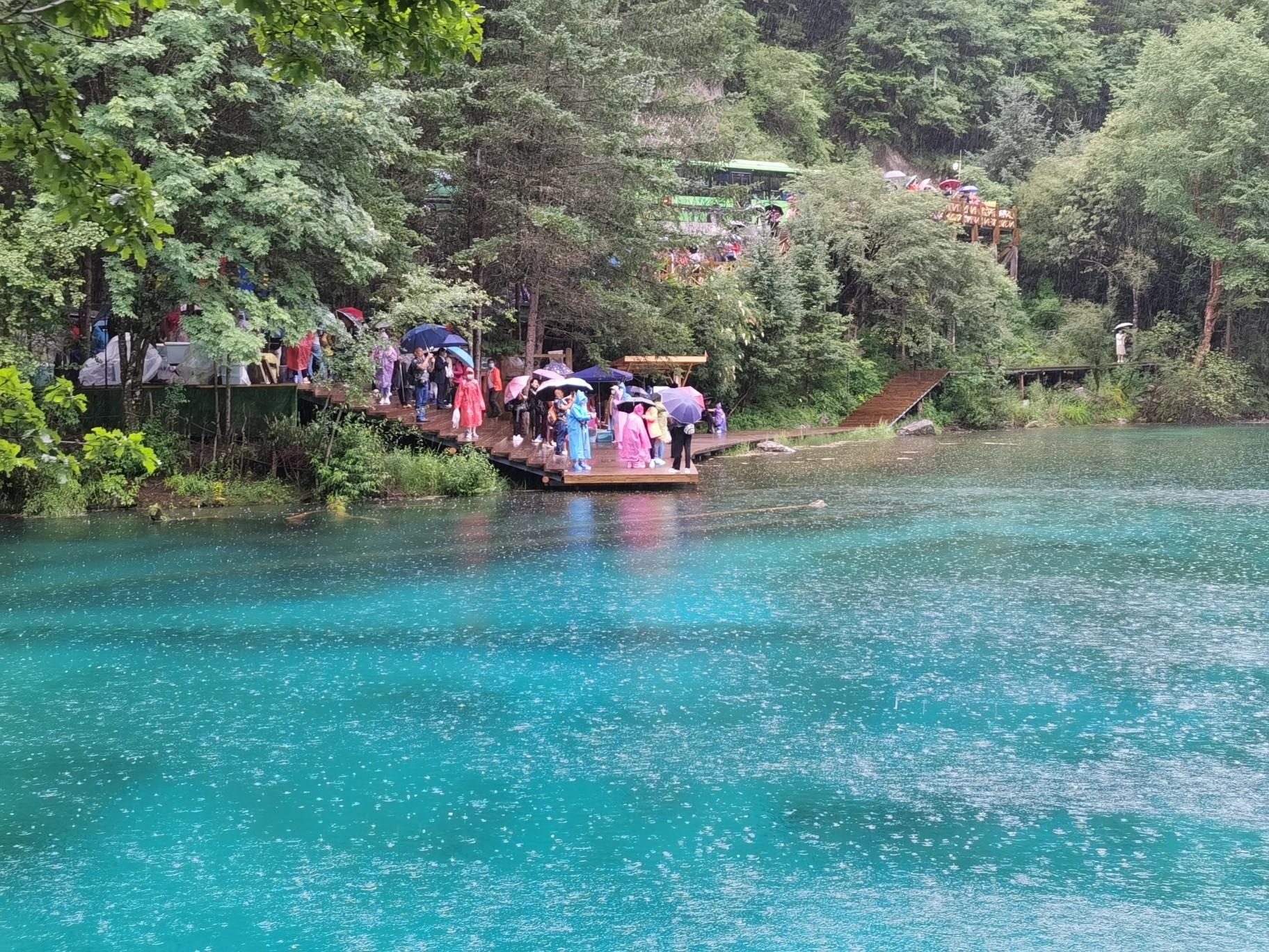 一绝”和“九寨精华”,在珍珠滩瀑布之上,熊猫湖的下部于日则沟孔雀河上游的尽头。一个湖泊,被大自然调和成五彩绚丽的靓景,那是人工永远无法缔造的一道壮观景象。尽管天宫不作美,但雨中五花海的景色依然非常的漂亮哦!
