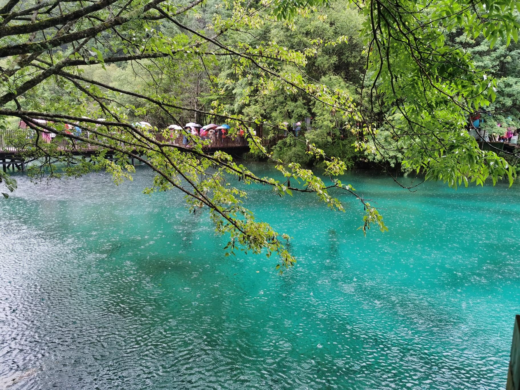 从薰衣草基地回酒店吃午饭的路上又开始下雨,一直下到游玩黄龙景区结束时,雨点时大时小,淅淅沥沥下个不停。面对这么恶劣的天气,我和我的同行没有气馁,没有选择放弃,反而更加坚定了上山游玩的决心与信心。雨中坚持游览黄龙整整3个小时。