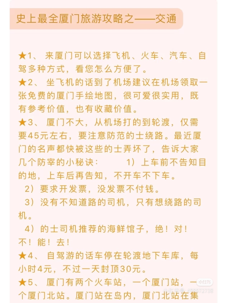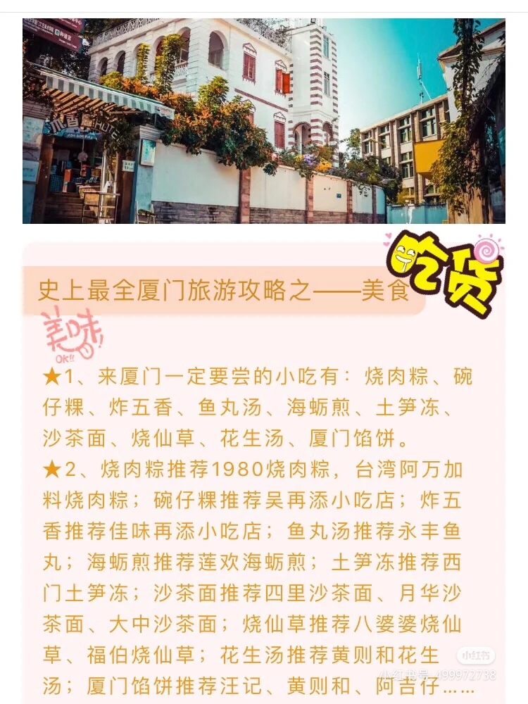 1️⃣Day 厦门站中山路附近民宿(预计两夜)逛中山路➕八市2️⃣Day 南普陀厦门大学(至少提前三天公众号预约)曾厝垵3️⃣Day 鼓浪屿计划来回一天行程(至少提前三天买票)傍晚返程❤️爱心小贴士❤有很多没去过的朋友光说名字可能不太清楚是什么地方下面简单介绍一下1️⃣八市...显示全部