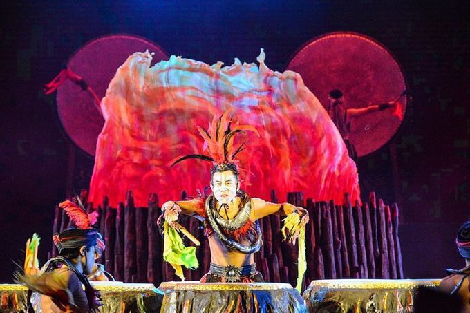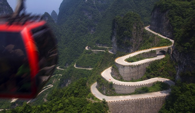 市区天门山的山脚下,大型山水实景音乐剧,以高山峡谷做舞台背景、使用顶尖科技舞美灯光音响、融入了