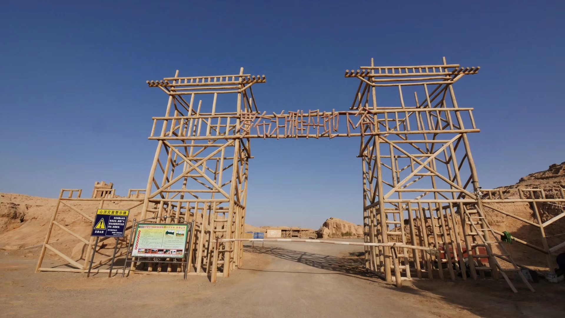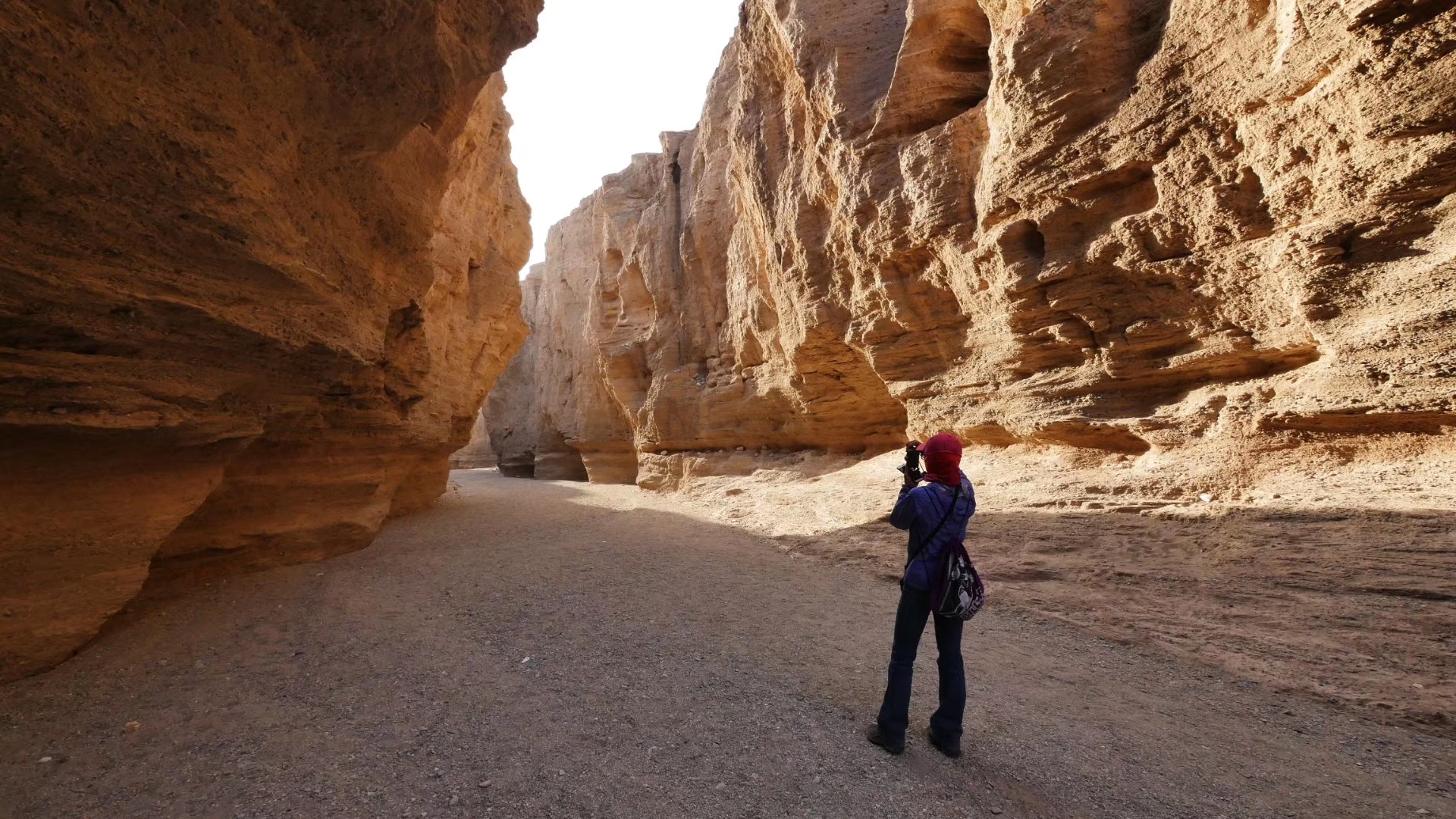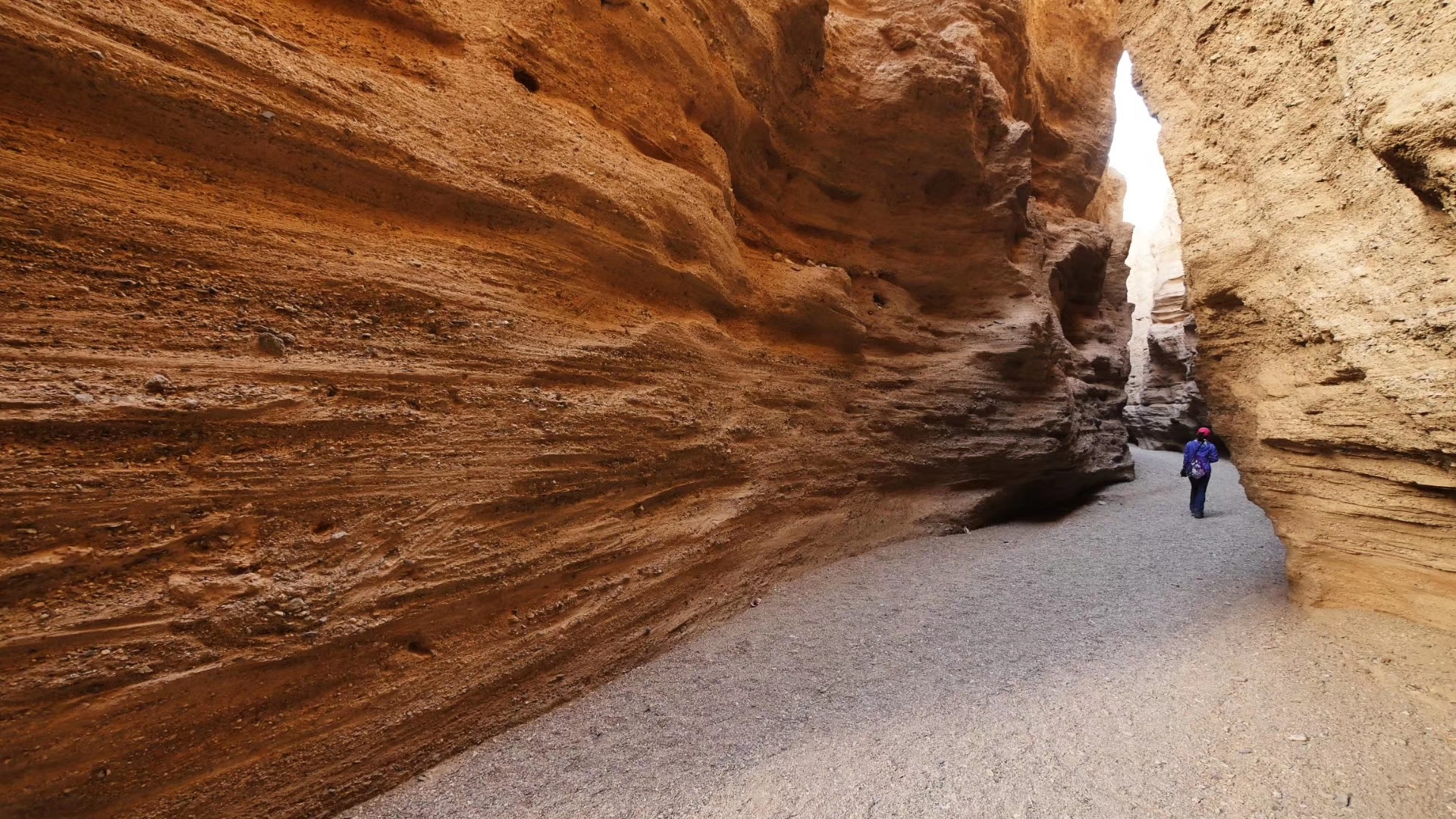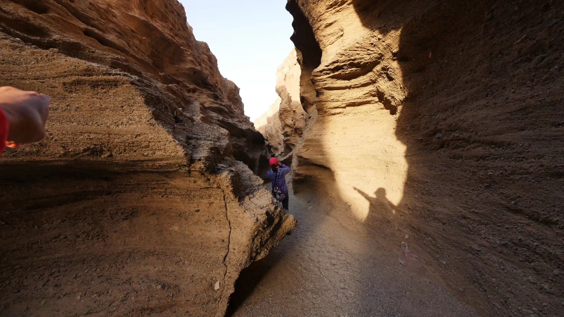 我们从沟底上来时已经快八点半了,好多地方都没时间去了。我们从景区出来才知道,其实景区门口这条路直通G218国道,从罗布泊大峡谷景区入口到G218国道有28公里,这条路上大车非常多,又常年失修,所以路非常烂,又颠簸一个小时,我们终于到了
