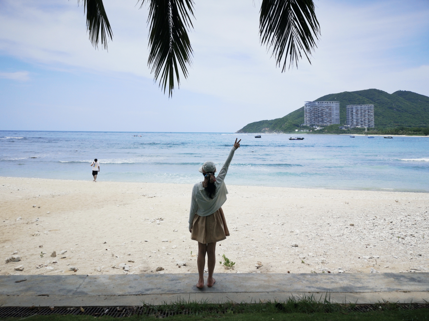 今年6月我在三亚去了大东海景区,不为别的只是看风景散心。在海边找了一处荫凉的地方,要了一个清补凉,欣赏着南国风情。在这里整个人变得轻松、简单,好像就是去看一眼椰林下的海滩,椰子树蓬松的枝条,在海风吹拂下袅娜缠绵,撑起一张张绿伞,把白色沙滩打扮得美轮美奂。