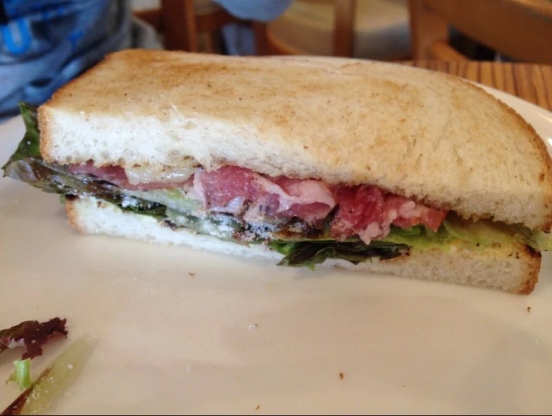三明治里面加的是生牛肉片,超级好吃,起初看到的时候我们也是吓一跳,生怕会拉肚子,结果证明完全没问题。