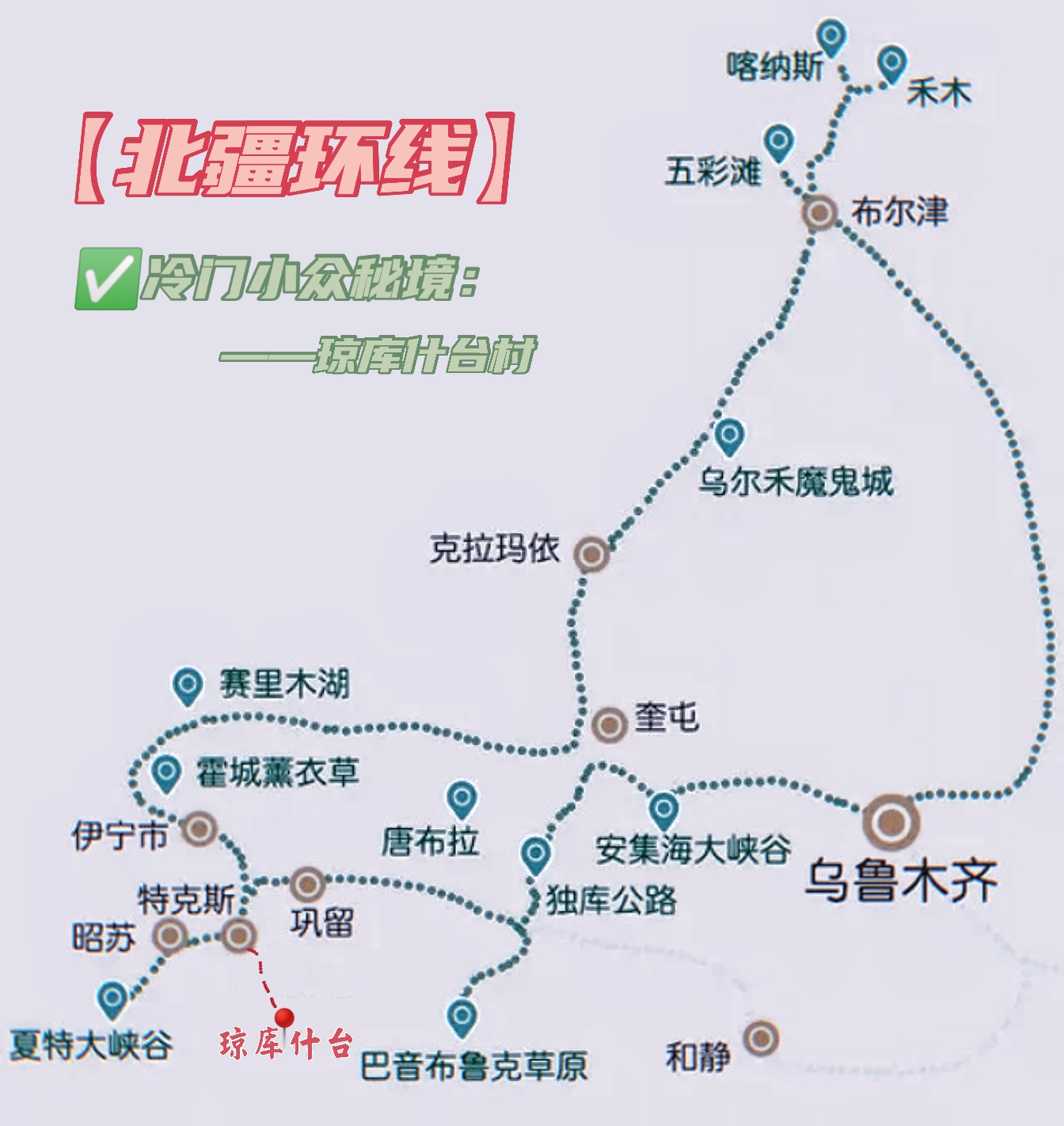 县到琼库什台村约95km,车程3小时,主要都是盘山公路。