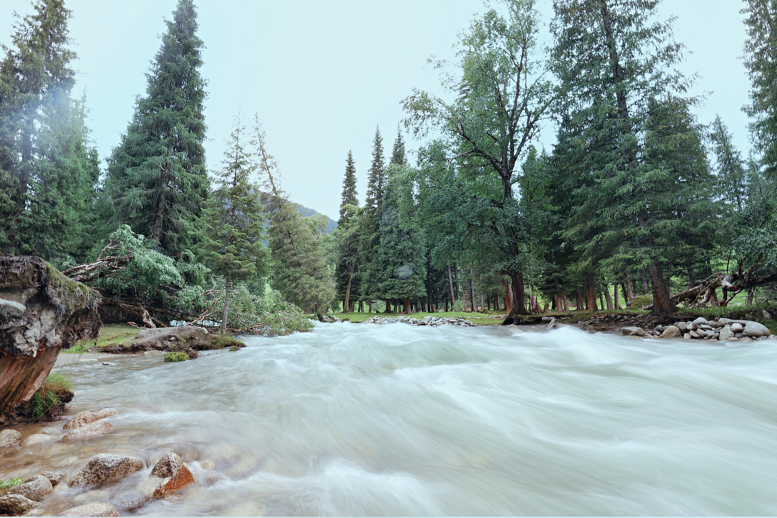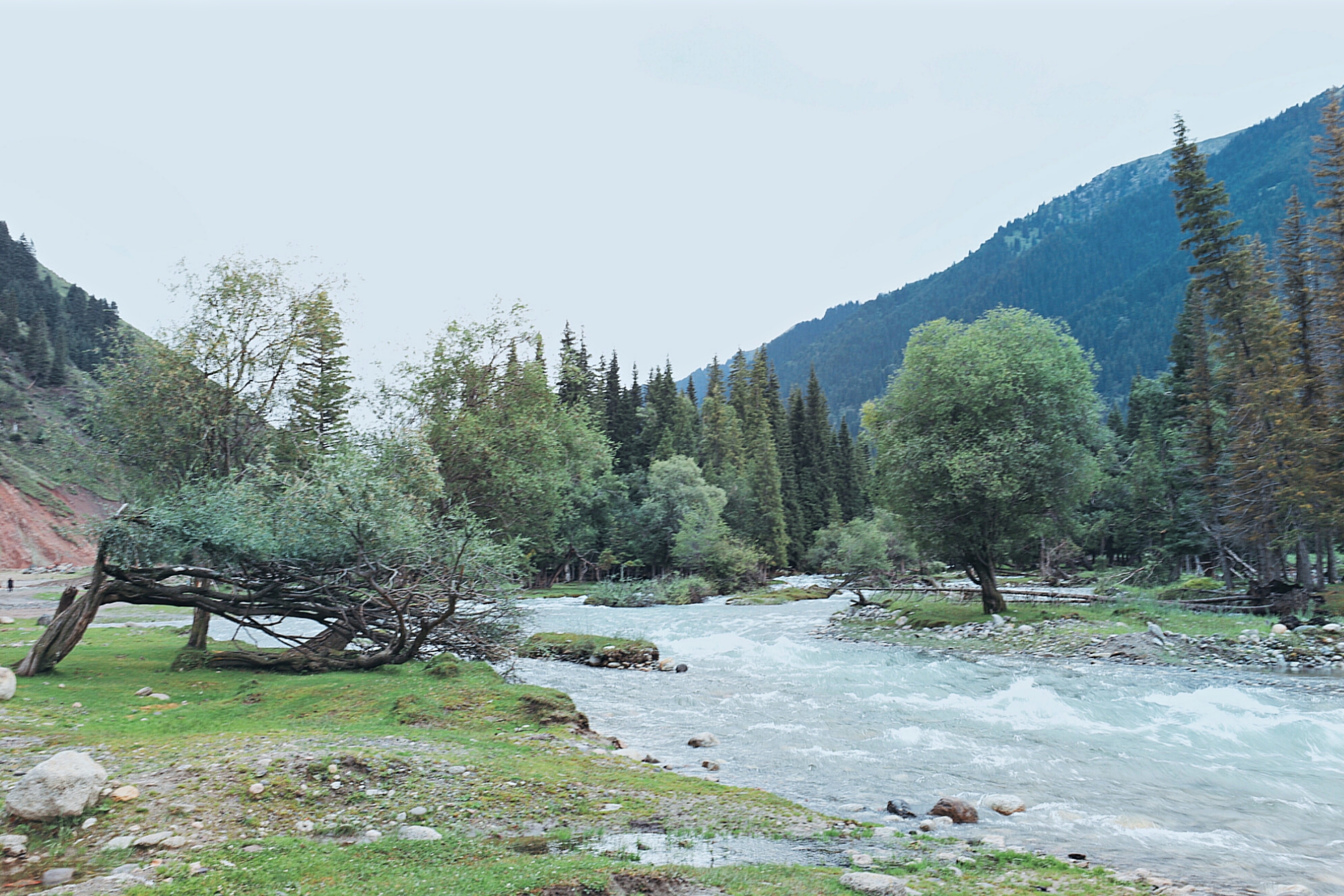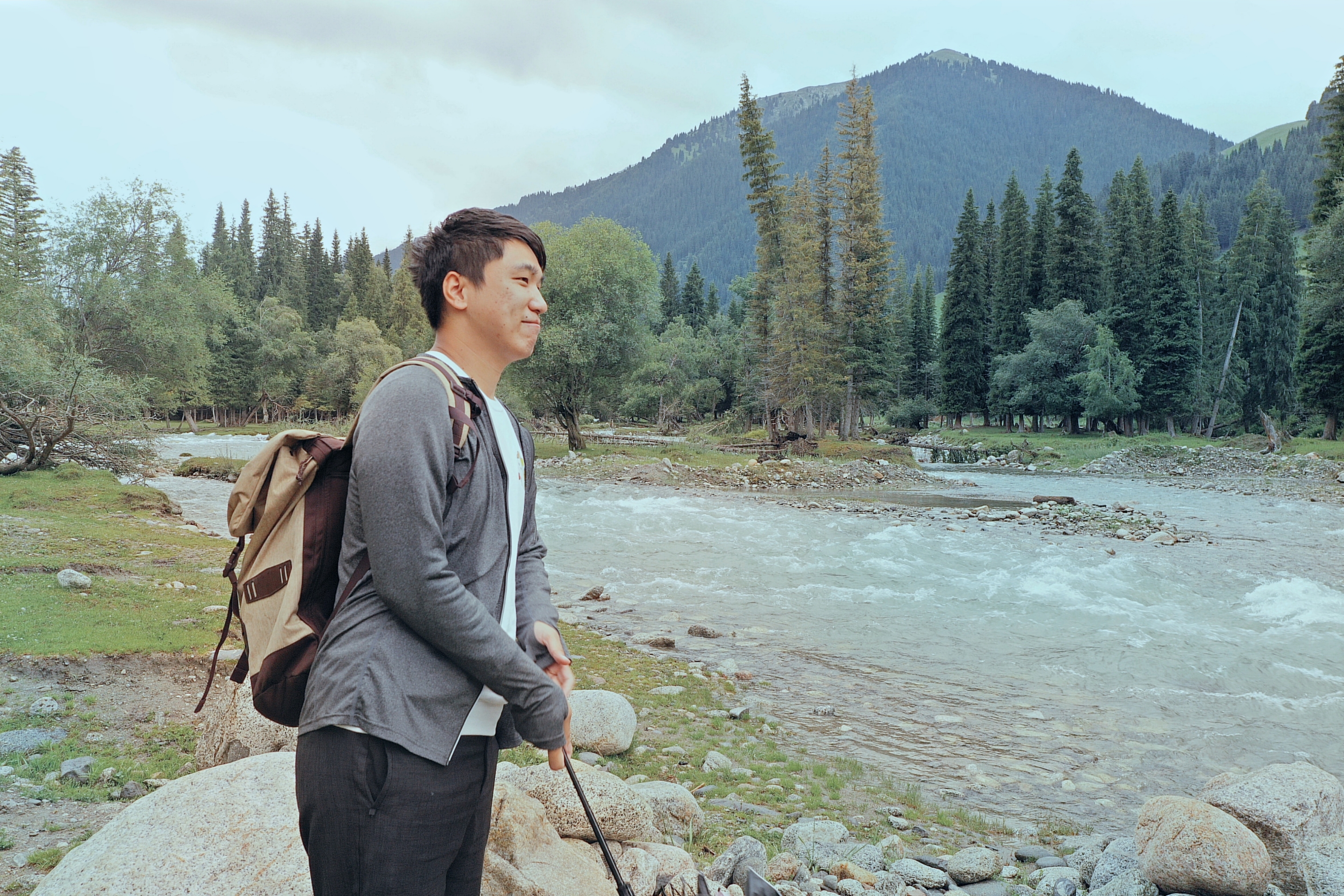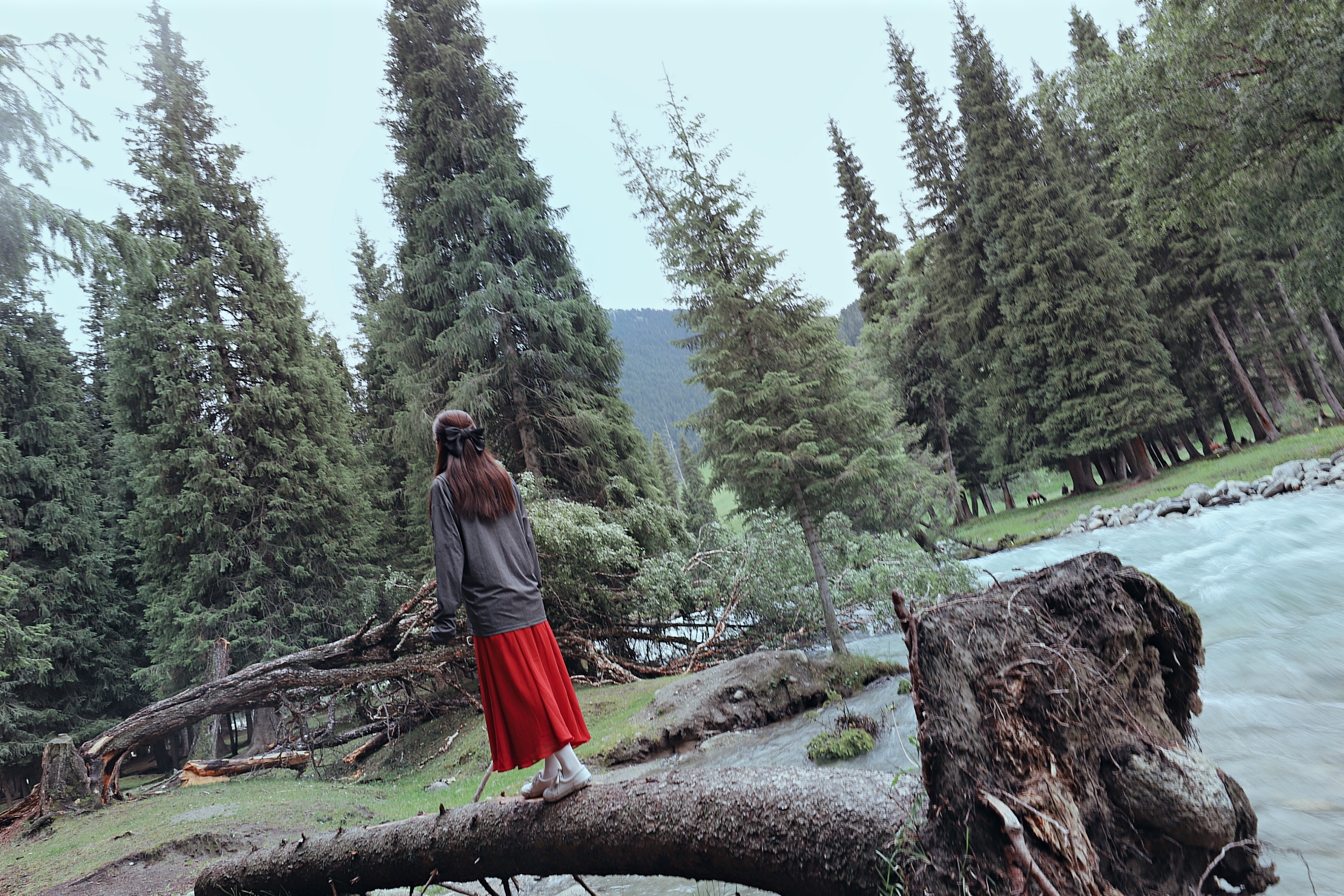 放眼望去,细雨过后的村庄被烟雾缭绕青山包围,眼前的琼库什台远比那些照片中呈现的清新恬静,完全没有风景大片那种艳丽的色彩,更像是一幅淡淡的水墨画。