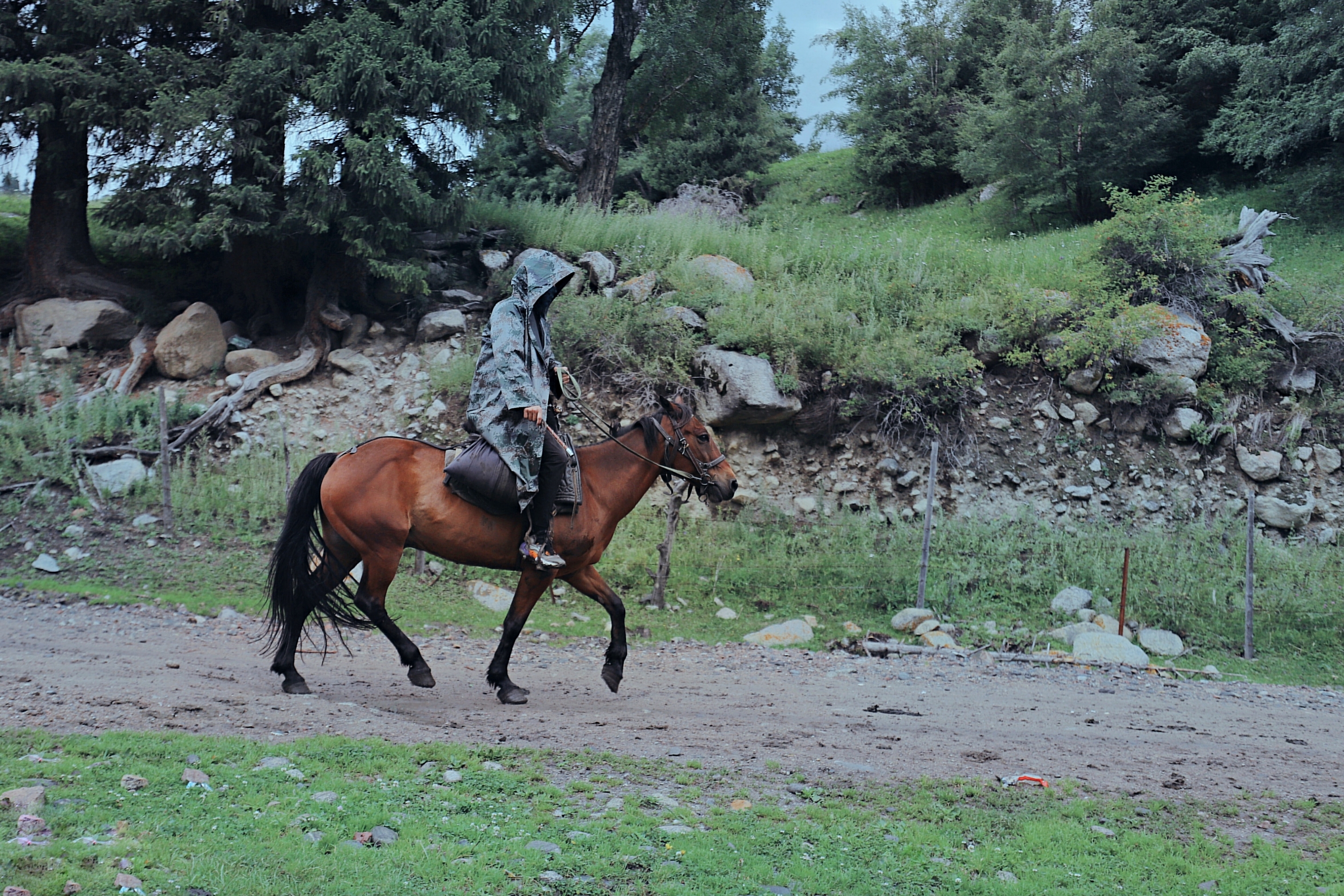 这是一个哈萨克人的牧村,位于天山脚下、乌孙古道的北入口、喀拉峻草原的上游。