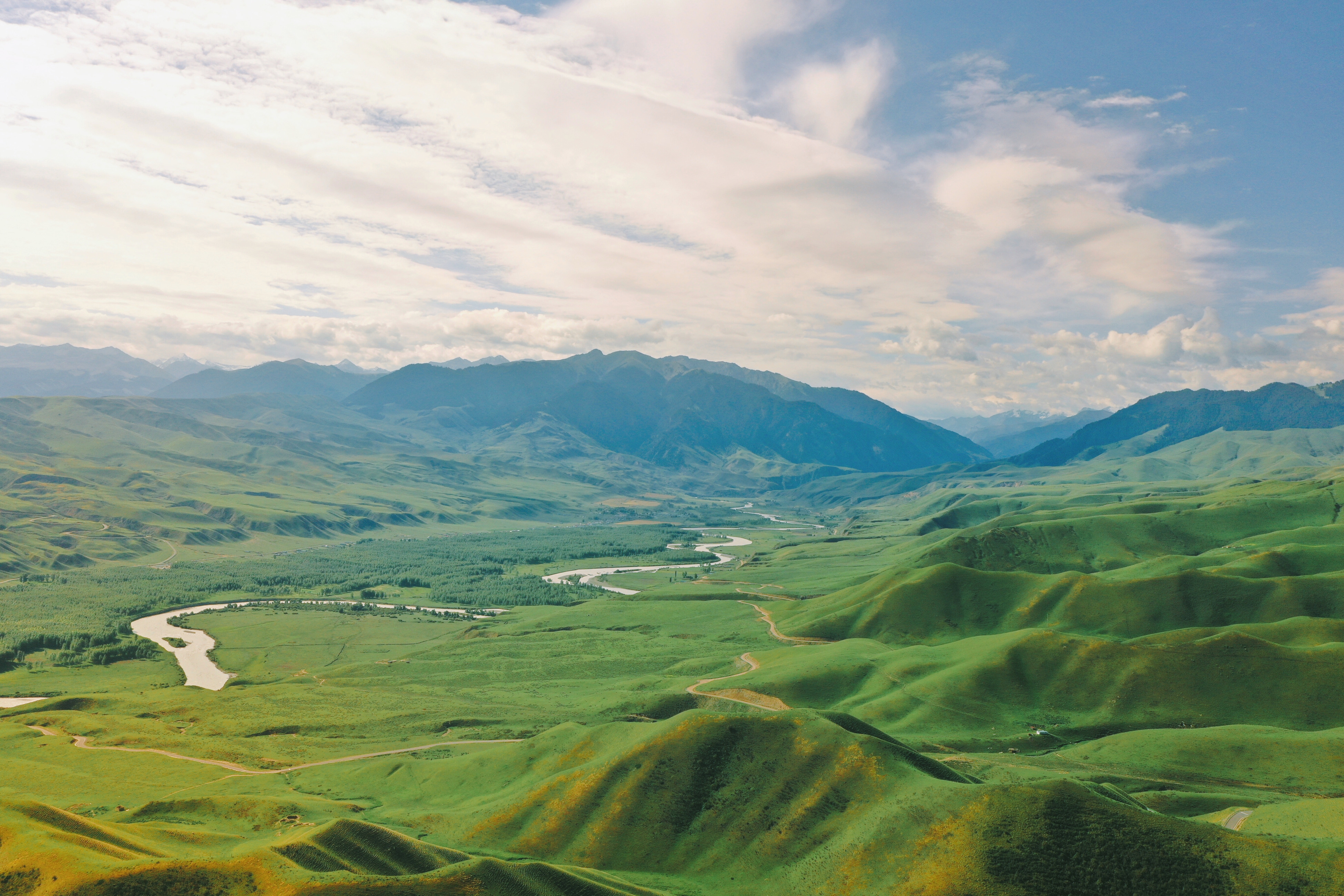 还有前往琼库什台的沿途风景,实在是太赞了‼️你可以在山峦草原之间肆意地奔跑,让无人机和老鹰打一场空中博弈。