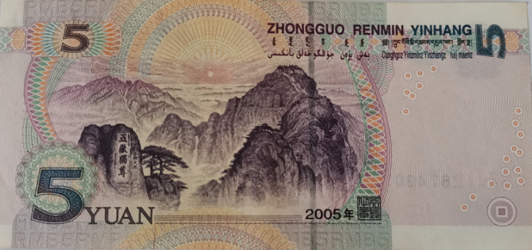 符号”之一,它出现在第四套人民币中1元券上。这幅长城的图案选取从空中俯视的角度,表现出长城依山蜿蜒的巍峨气势。
