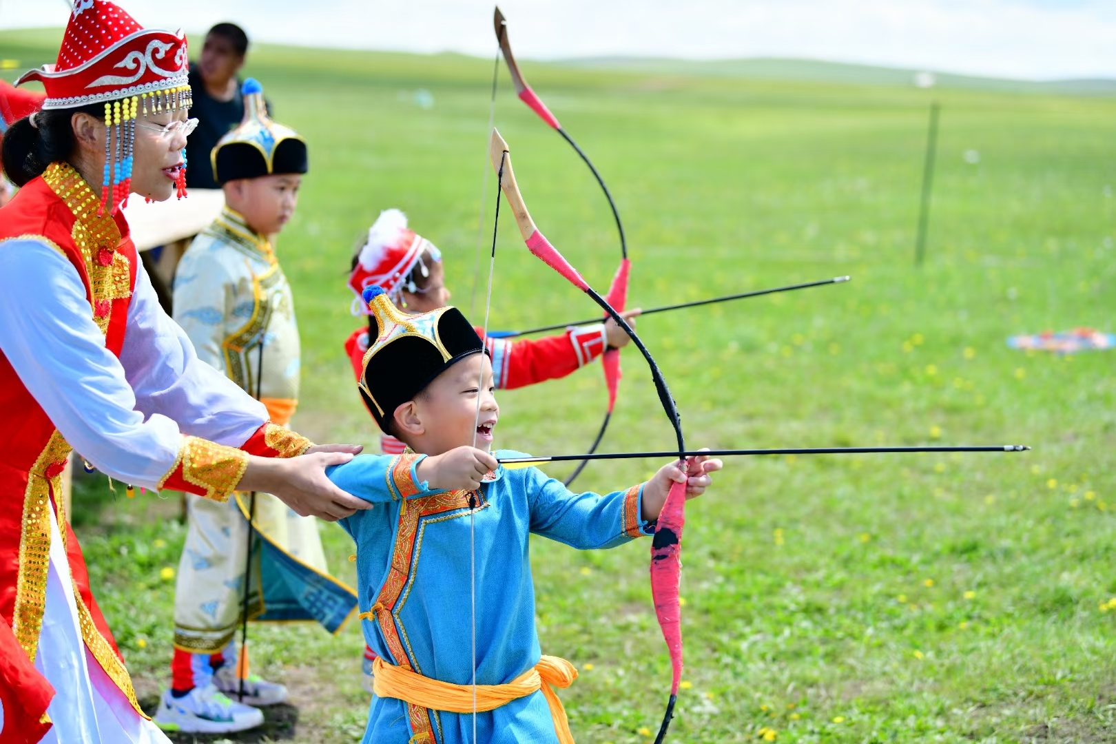 (2)亲手射箭,骑马训练,滑草比赛,全家动手一起搭建蒙古包;