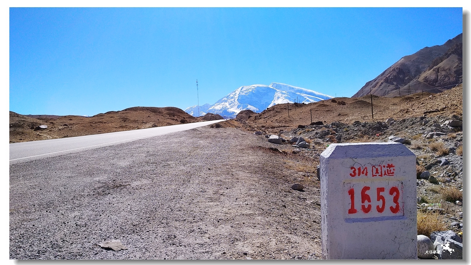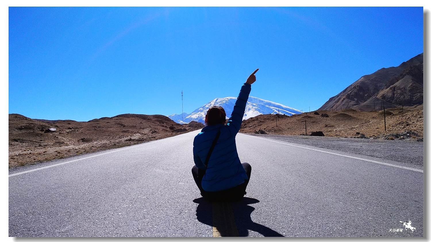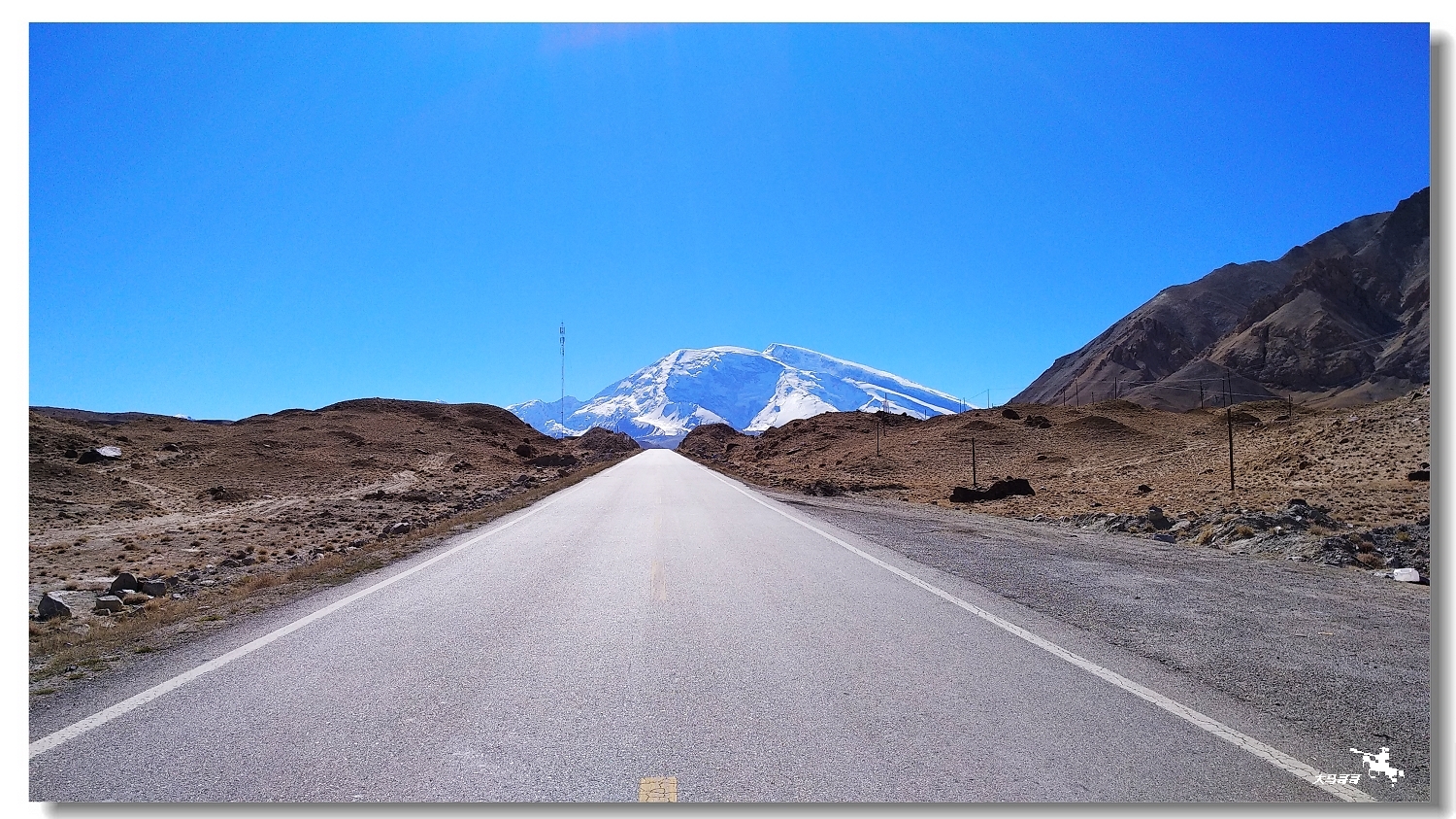 奔向帕米尔高原的314号国道,道路前方就是慕士塔格峰。