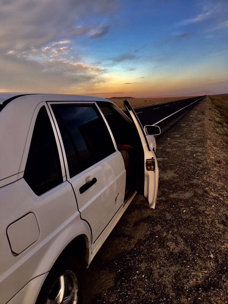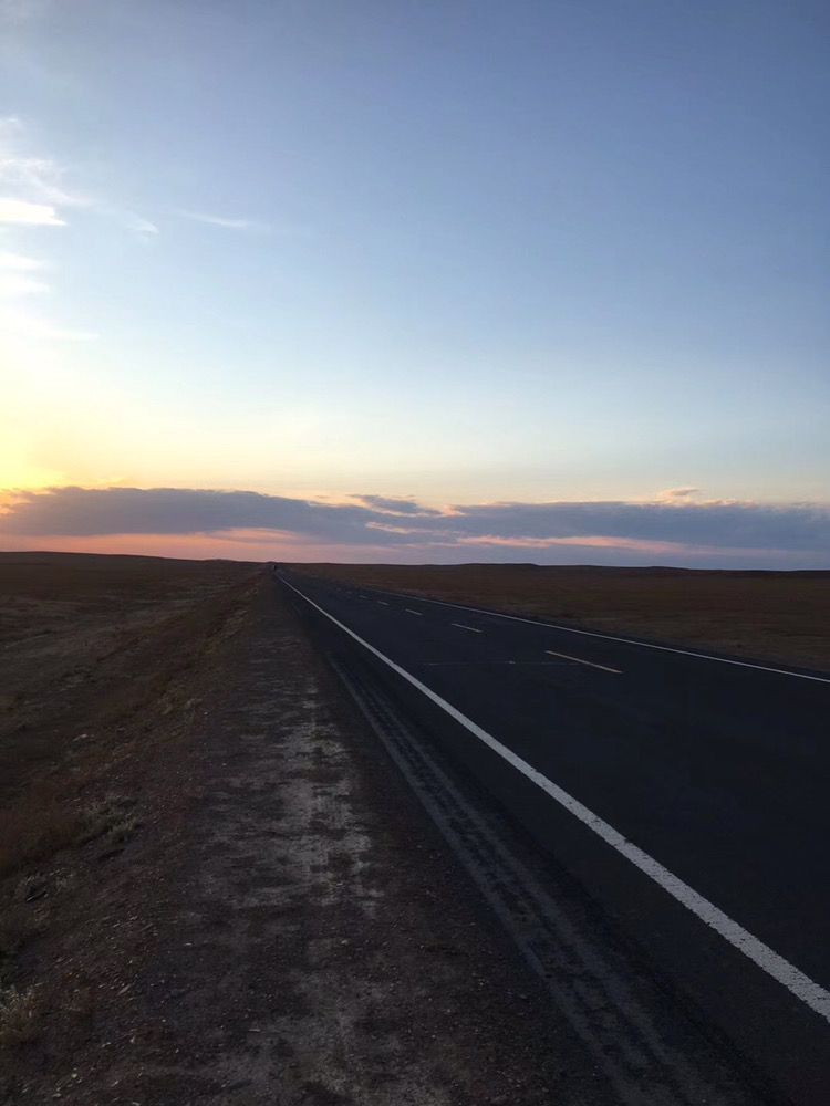 奔向帕米尔高原的314号国道,道路前方就是慕士塔格峰。