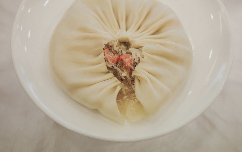 蟹黄汤包是江苏省的一道传统小吃,属于苏菜系。蟹黄汤包的制作原料十分讲究,馅为蟹黄和蟹肉,汤为原味鸡汤,制作工艺精良。蟹黄汤包的汤汁晃动而皮儿不破,提起像灯笼,放下如满菊。