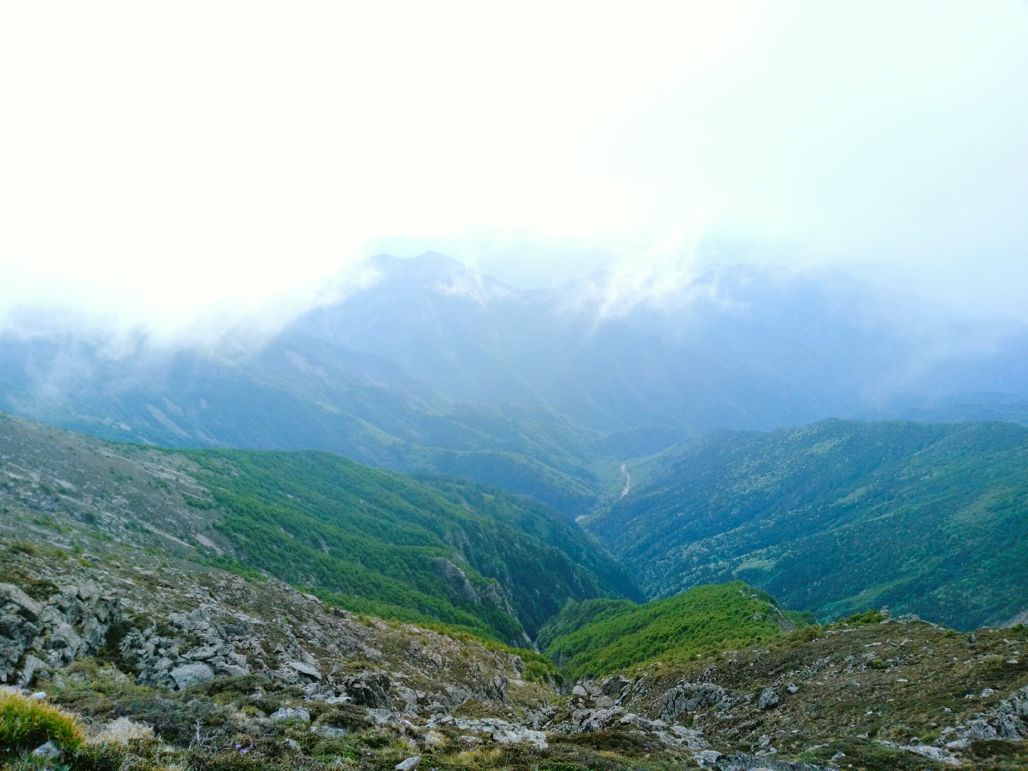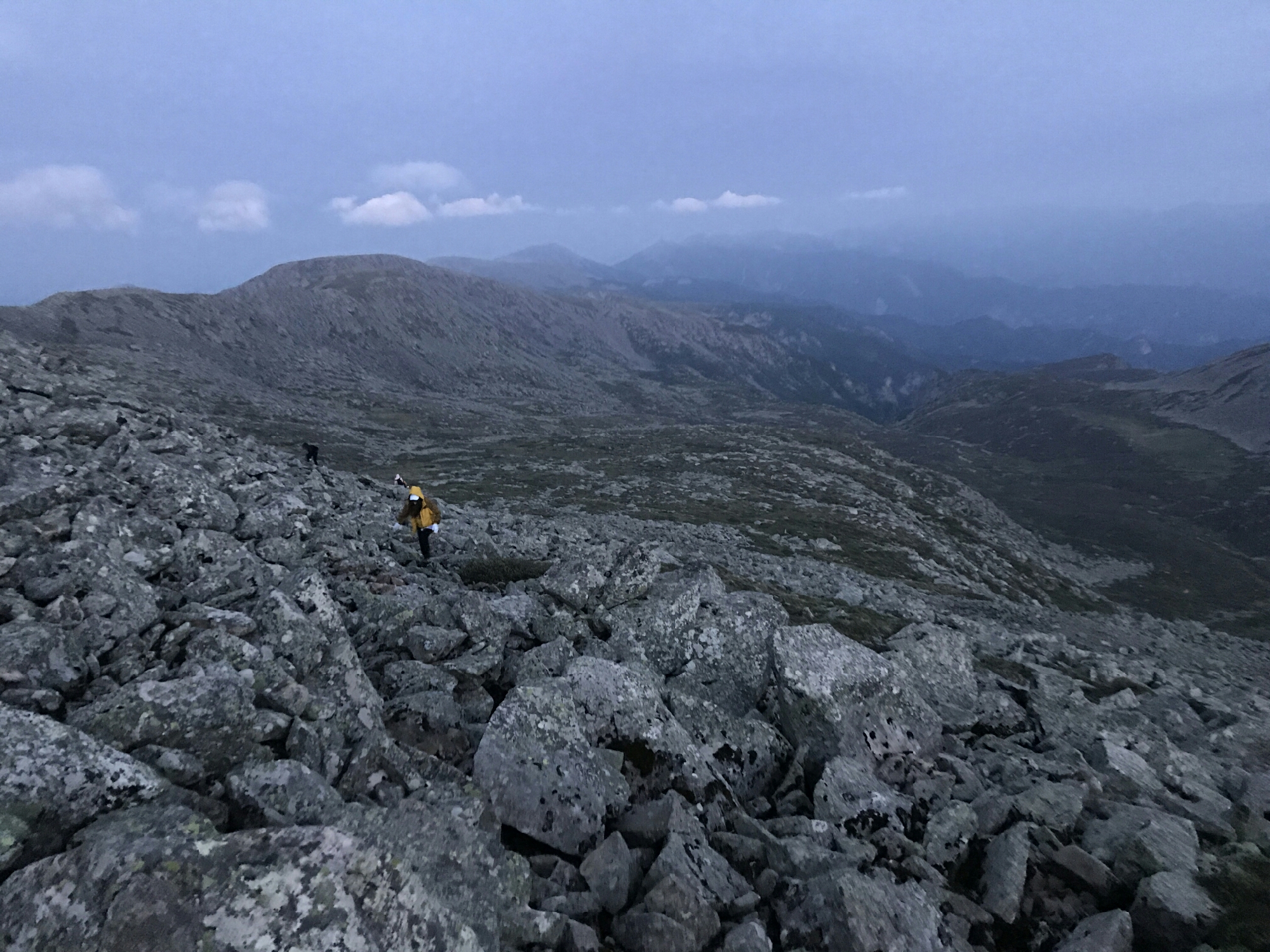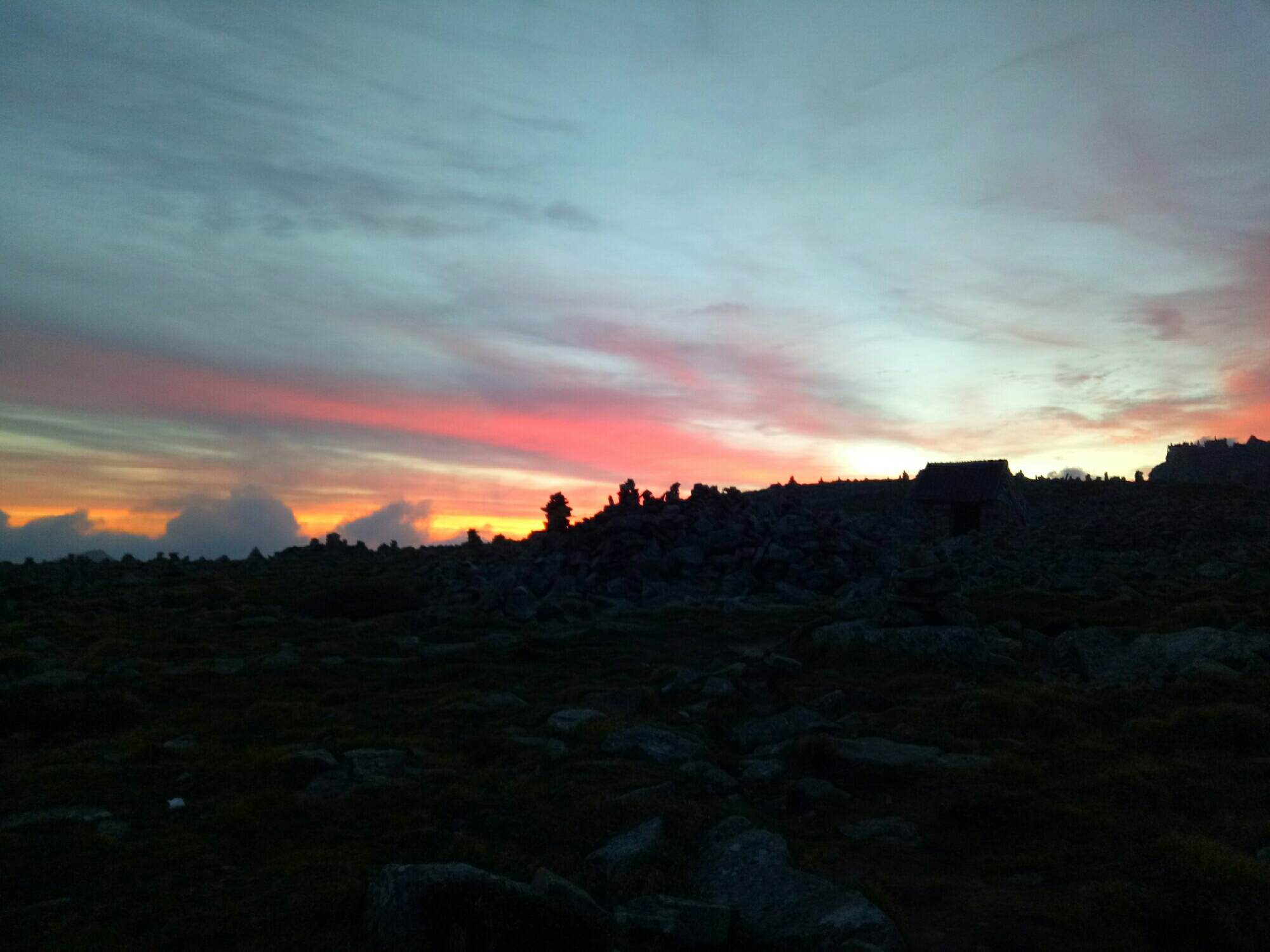 △在凌晨四五点的时候起来从大爷海摸黑朝着拔仙台进发,在天微亮的时候看看身后,乱石堆里缓缓而出的云朵,鱼肚白的清晨。等到爬到山顶,等待你的还有日出新生的带给人希望的感觉。当然如果夜里爬山来在这里看星星定也是壮阔的,毕竟这里可以远眺俯视整个秦岭山脉。