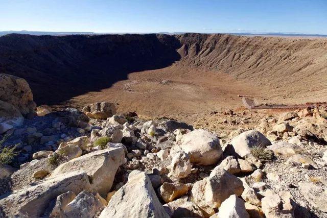 除了自然形成的风景,这里还能看见5万年前陨石坠落的遗迹。5万年前,一颗直径50米的镍铁质陨石撞击在亚利桑那北部沙漠中,释放的能量相当于150颗原子弹。撞击瞬间,大部分石体消融。而五万年后的我们站在坑边,不知是否还能听到外星智慧的窃窃私语。