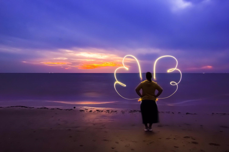 有些人天生面对镜头时就会紧张和不自然,那么选择不看镜头的侧脸或是拍摄背影等也是很好的选择。