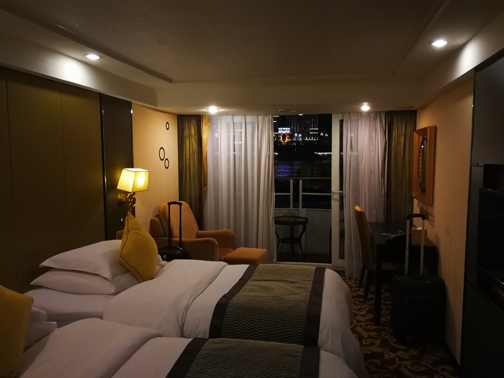 游轮就像一个移动的豪华酒店,虽然未必有岸上五星级酒店那么豪华,我觉得怎么着也可以算个三星级酒店标准。
