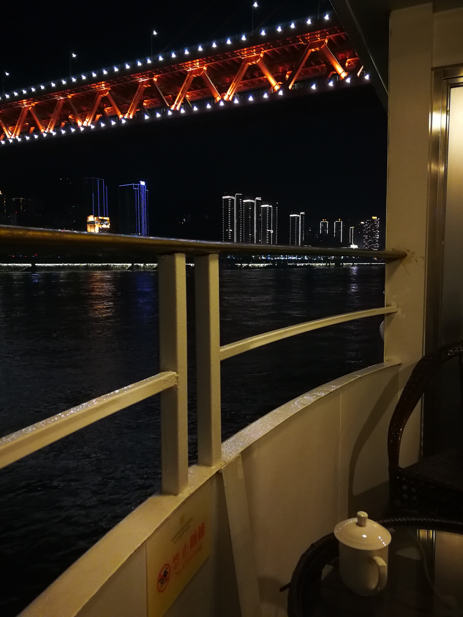我最喜欢的是每个房间还有阳台,阳台就是船弦边,阳台有小桌子,亲人或好友可以在外面喝茶、抽烟、喝酒、侃山,不会有“受困”的感觉,也不会影响房间里的人或其他人休息。