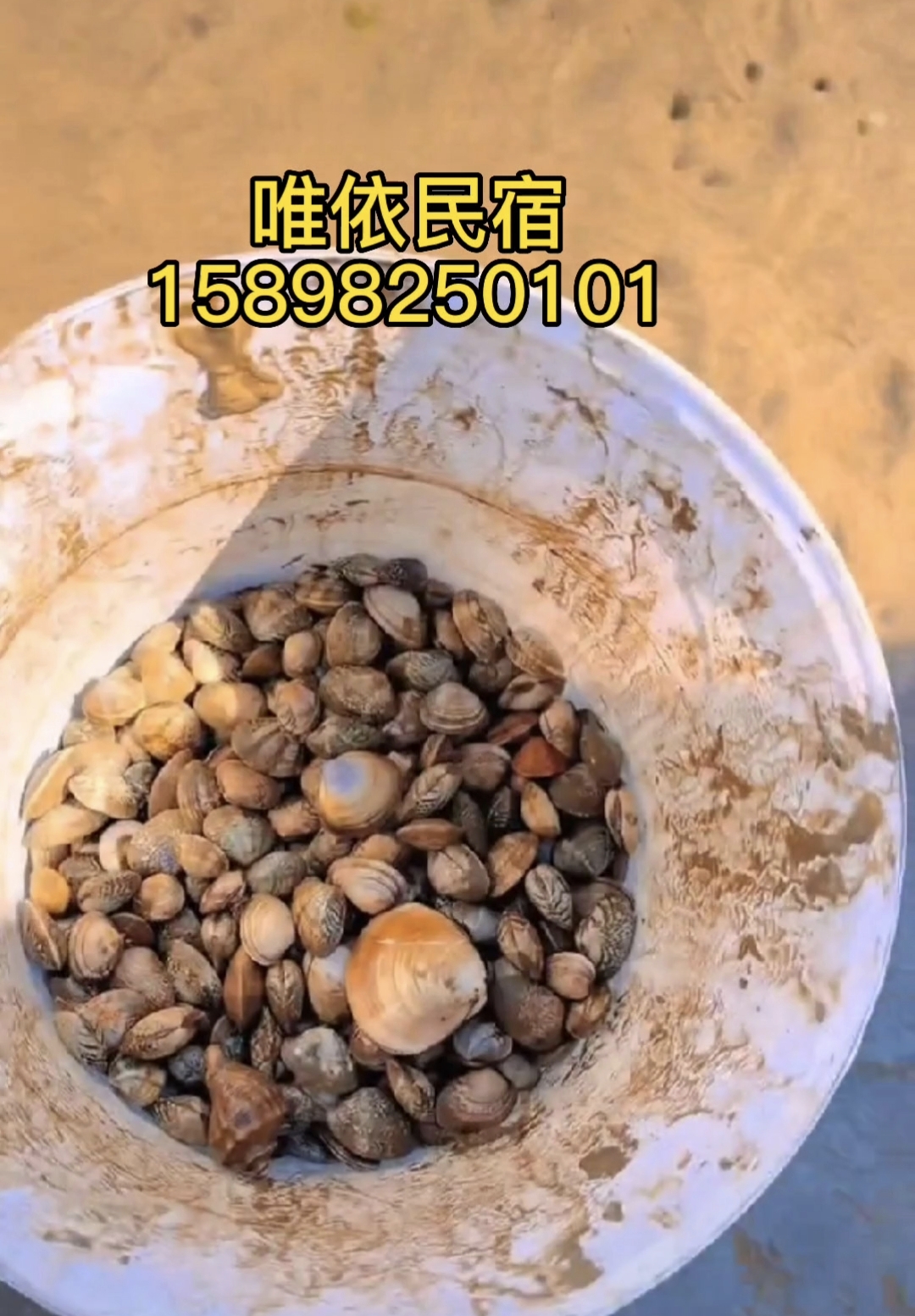 海滨浴场民宿的老板,可以叫我唯依!这赶海收货咋样!必备条件,得大潮,而且前一天有风浪!才能收货满满!推荐工具,小耙子,小夹子,手套(厚一点的最好有胶皮的)最后市小桶!(装海鲜的)