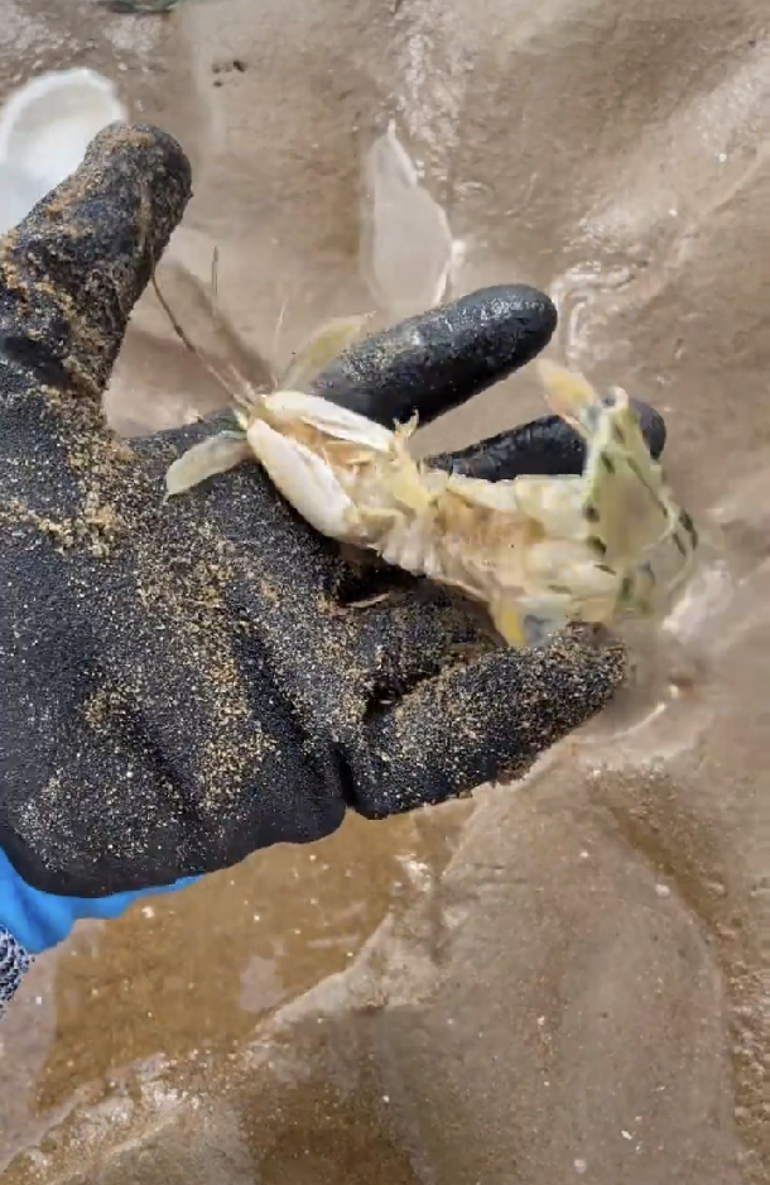还挺肥!温馨提示必备手套啊,皮皮虾战斗力虽然没有螃蟹厉害,弹到手指也会出血!